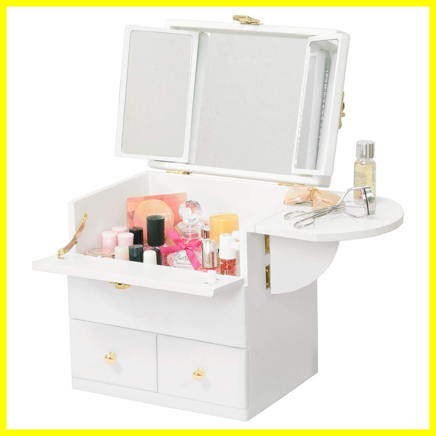 萩原 メイクボックス コスメボックス コスメ 化粧品 メイク道具 収納 【コンパクトなのに三面鏡】引き出し 鏡 ミラー 軽量 幅26×奥行19×高さ31 ホワイト MUD-6930WH