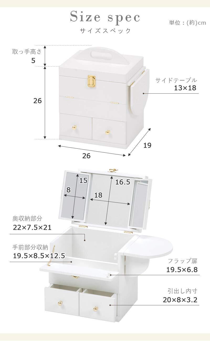 【各部内寸】引出内寸:(約)幅9×奥行8×深さ7cm 収納部内寸(奥):(約)幅22×奥行7×高さ21cm 収納部内寸(手前):(約)幅19×奥行8×高さ12cm