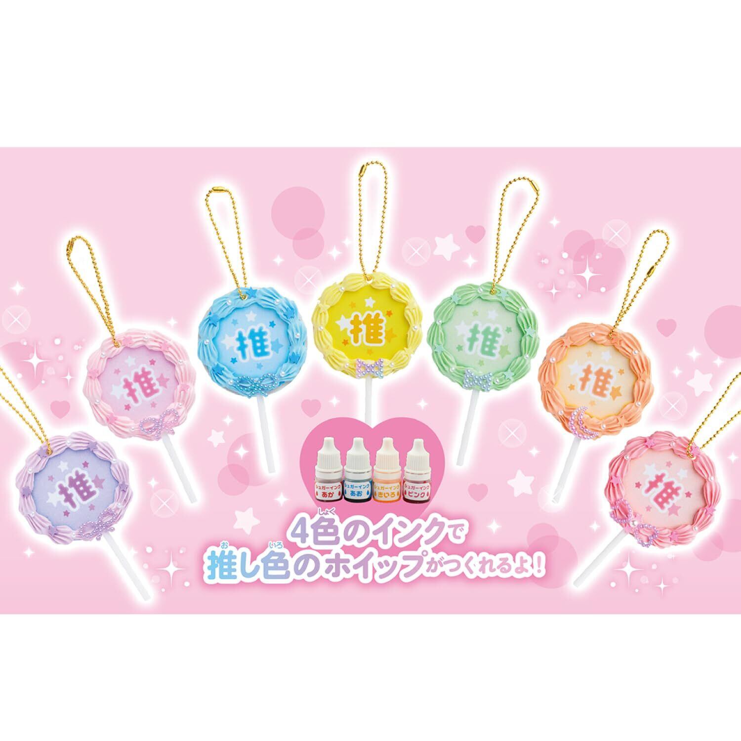 キット一つで、「推し色ケーキ」「トレカケース」「ヘアクリップ」「うちわキーホルダー」心ときめく胸きゅんグッズを作ることができます。