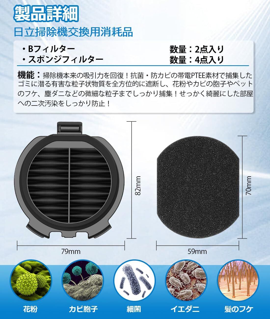 日立 PV-BJ700G-013 掃除機 用 フィルター Bフィルター 2個 スポンジフィルター 4枚 抗菌・防カビ素材 PV-BFH900 PV-BFL1 PV-BL1H PV-BL20G PV-BL30H PV-BL3J PV-BH500G PV-BH900G PV-BHL1000J1 PV-BHL2000J PV-BHL3000J 掃除機フィルター PV-BF700-013-009と同等品