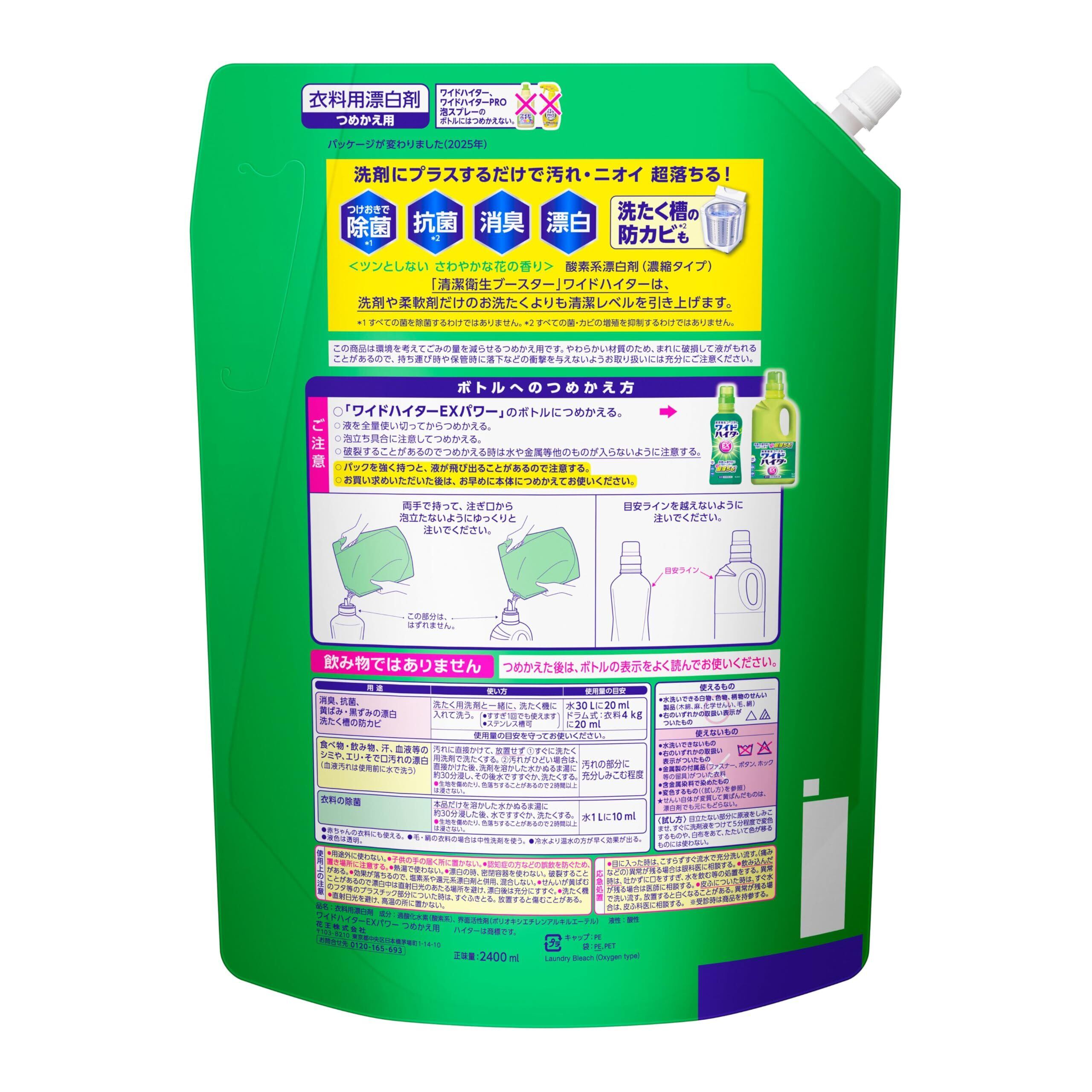 ワイドハイター 【大容量】EXパワー 衣料用漂白剤 見過ごせなくなった汚れやニオイ 、洗剤にちょい足しで超絶スッキリ! ! 詰替用2400ml