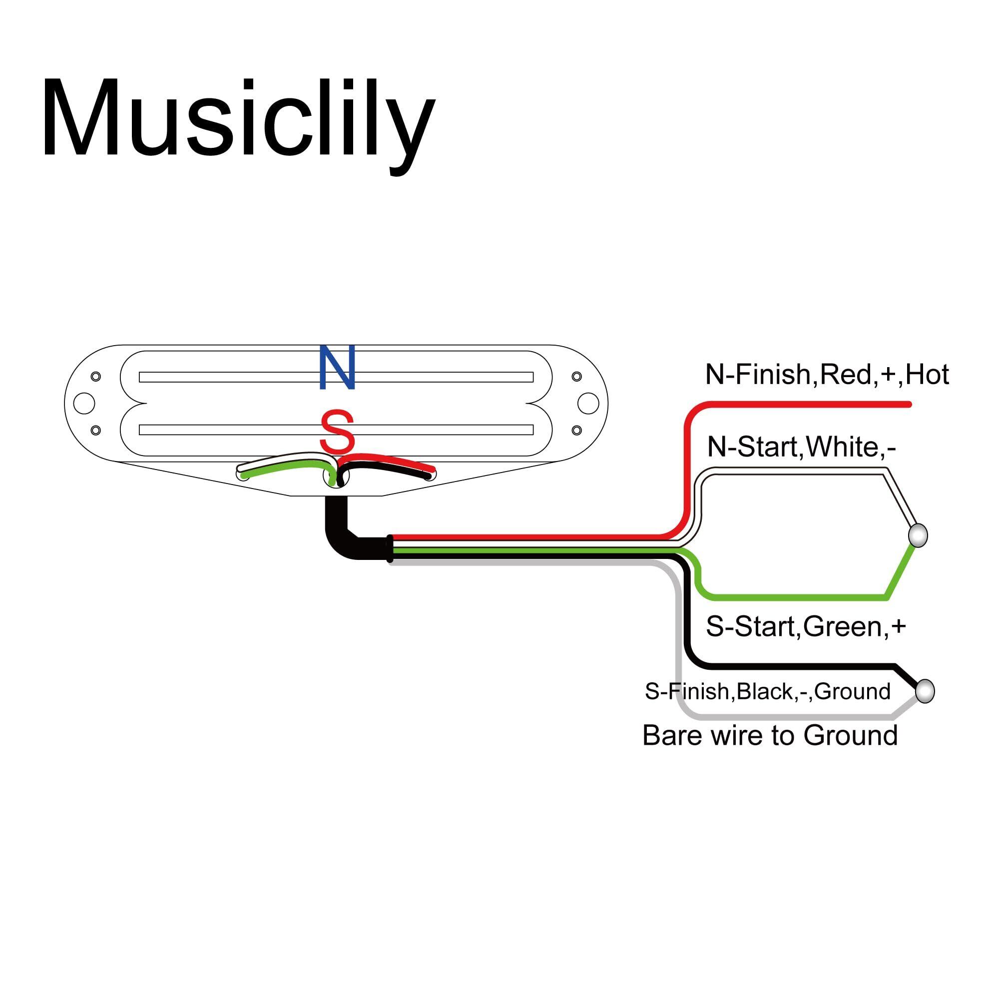 Musiclily Basic HOT RAILS シングルサイズハムバッカーピックアップSTストラト スクワイア エレキギター用、ホワイトボディ/黒いレール付き