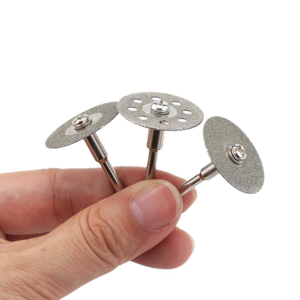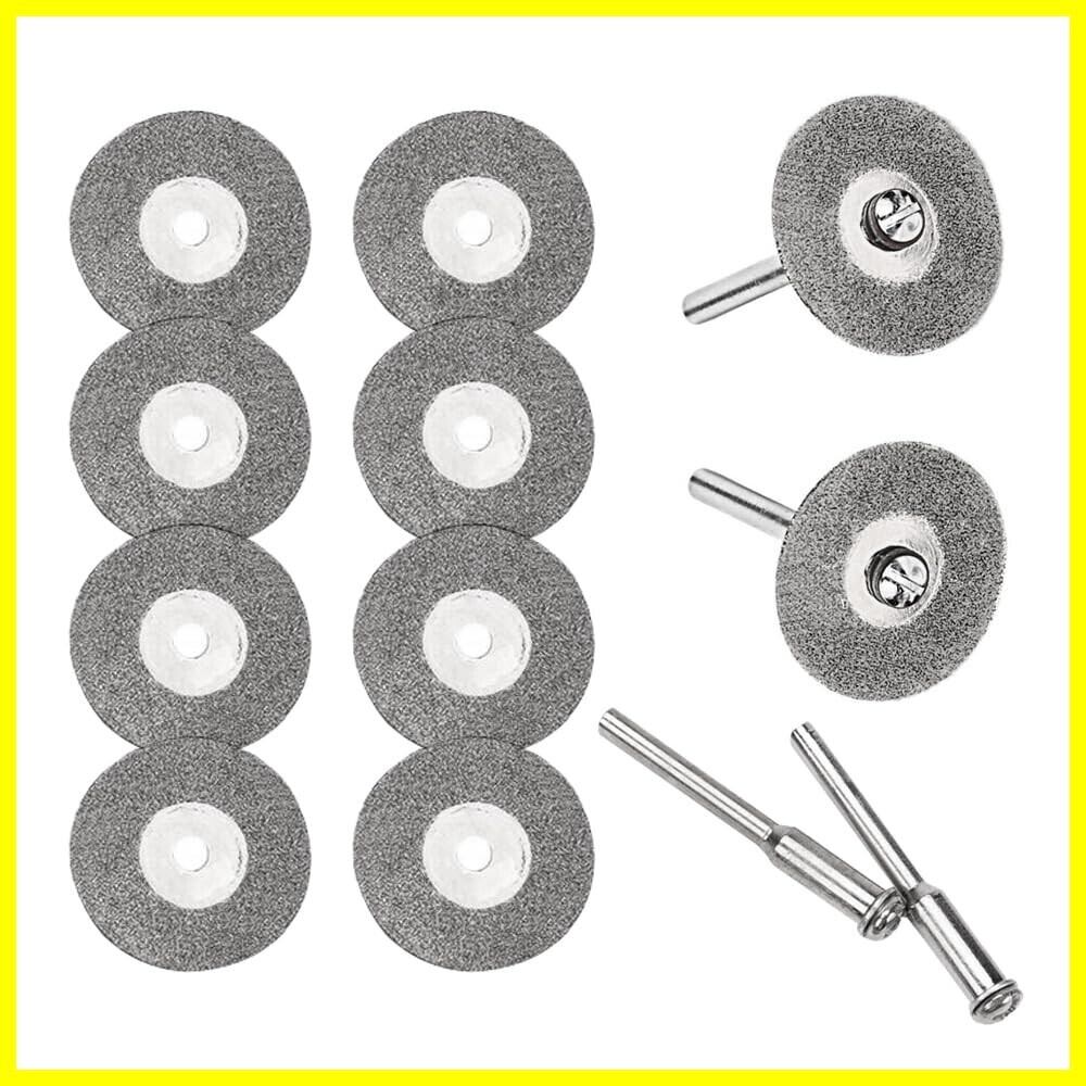 ミニダイヤモンドカッター 直径22mm 10枚入り 2.35mm軸2本付 3mm軸2本付 ダイヤモンドカッティングディスク ダイヤモンドビットブレードセット ミニルーター/ルーター/リューター用 シルバー (丸穴なし)