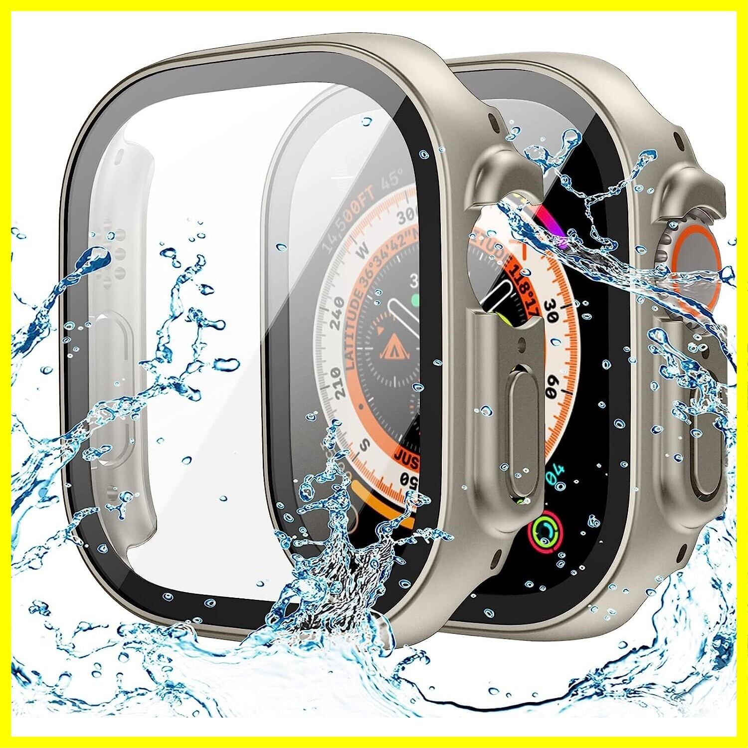 【2023強化版】AMAPC for Apple Watch 防水ケース 40mm 41mm 44mm 45mm 対応 と互換性があり 数秒で Ultra シリーズの外観に変換できます IP68完全防水 バンド 水泳・スポーツ専用 防水ケース ガラスフィルム 一体型 apple watch 用 カバー アップルウォッチ ケース 傷防止 耐衝撃 超軽量 PC素材 全面保護 一体型 Series8/7/6/SE/5/4 44mm対応 チタンゴールド