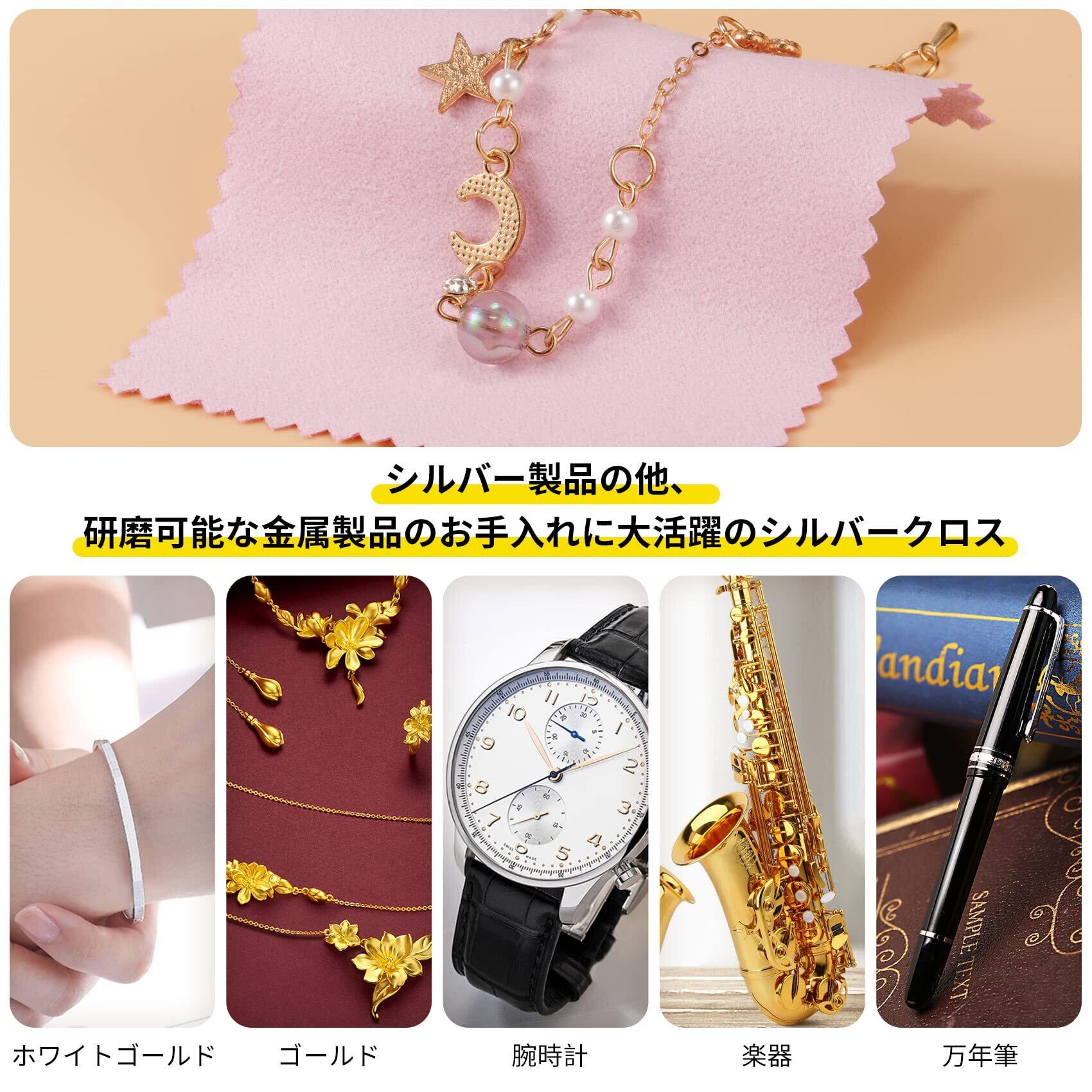 貴金属お手入れ:お持ちの貴金属やシルバーアクセサリーのお手入れに大活躍のシルバークロスです。アクセサリーを磨くだけで、本来の美しい輝きを取り戻します。サイズ:8x8cm/10枚入り。日常的な清掃には効果的ですが、強い汚れや深い傷には対応できない場合がありますその場合は、専用のクリーナーやケア製品を併用してください