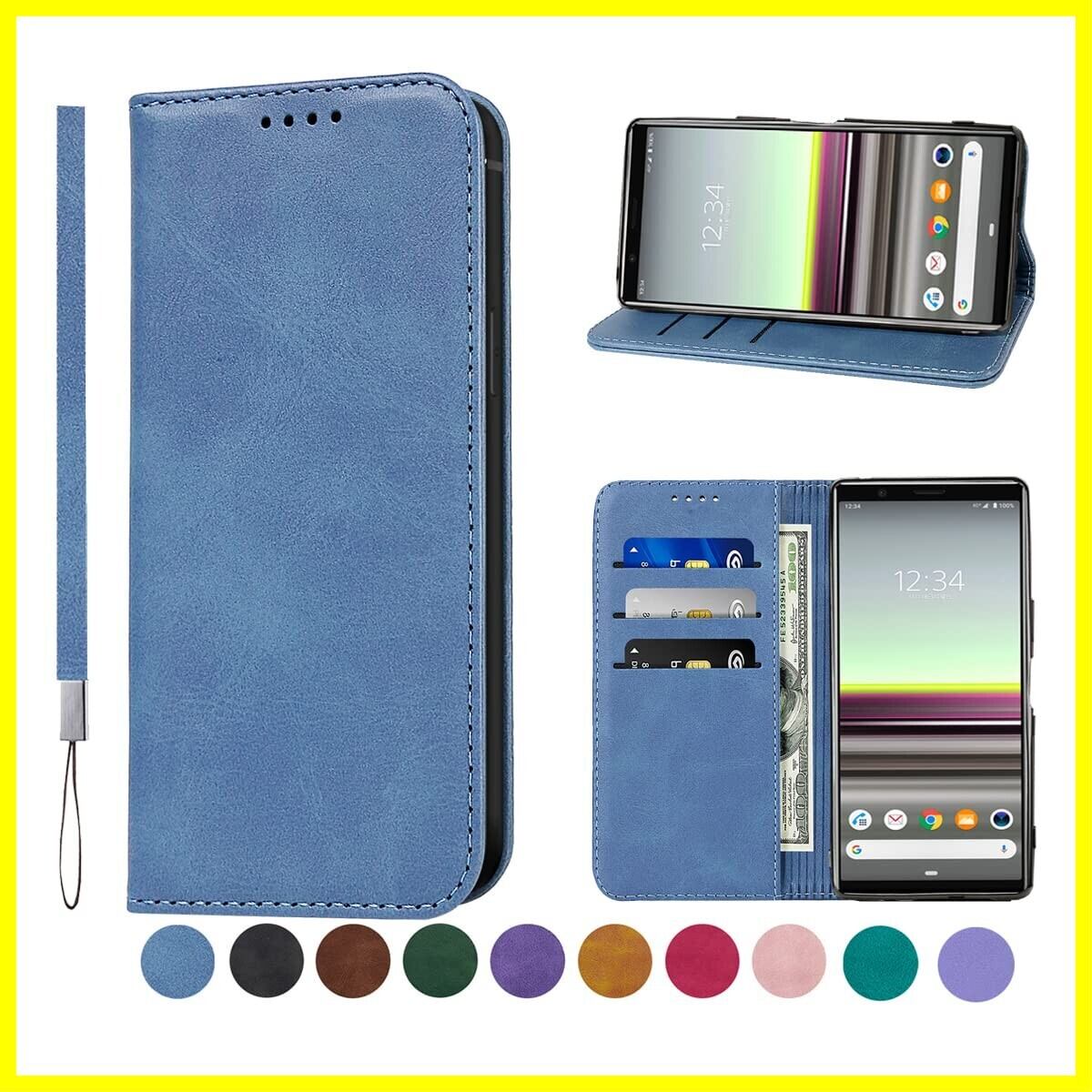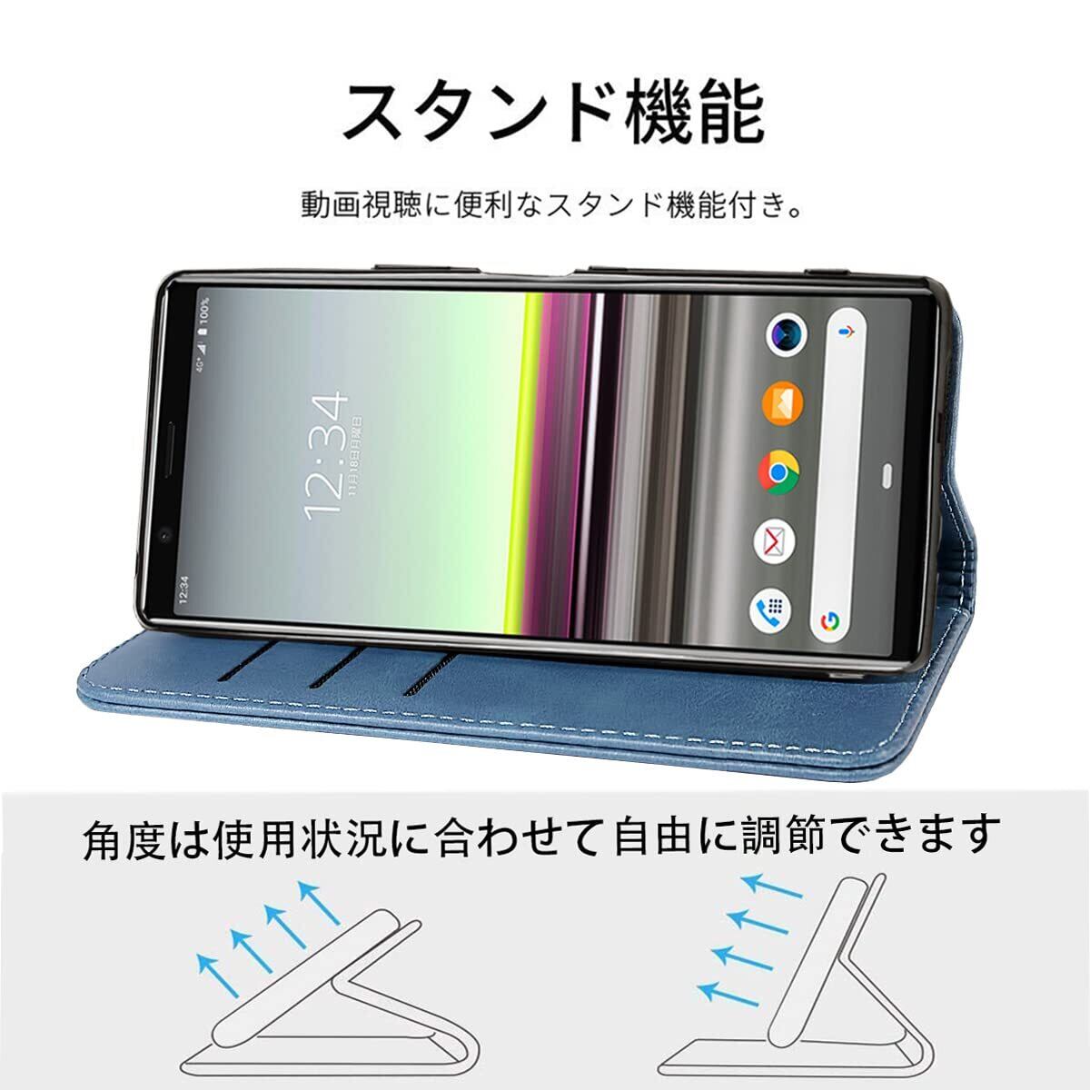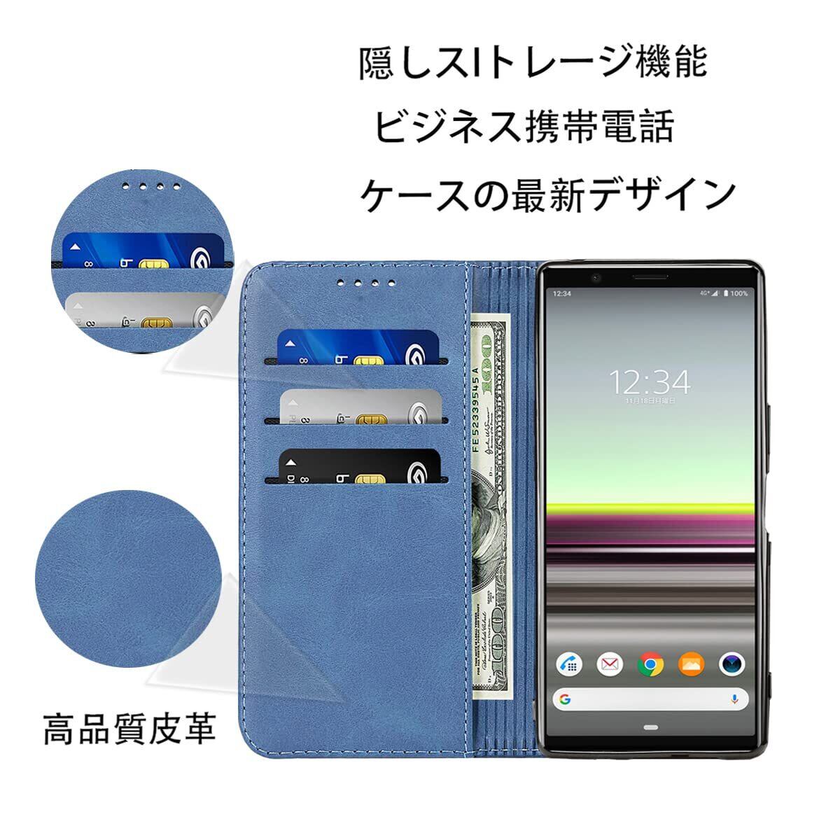 Xperia 5 ケース 手帳型 高質PUレザー Sony Xperia 5 カバー SOV41 ケース ソニー エクスペリア5 手帳 耐衝撃 SO-01M カバー Case 皮革 内蔵マグネット開閉式 ベルトなし スマホケース おしゃれ カードポケット スタンド機能 便利 スプラット同梱 携帯ケース (ブルー)