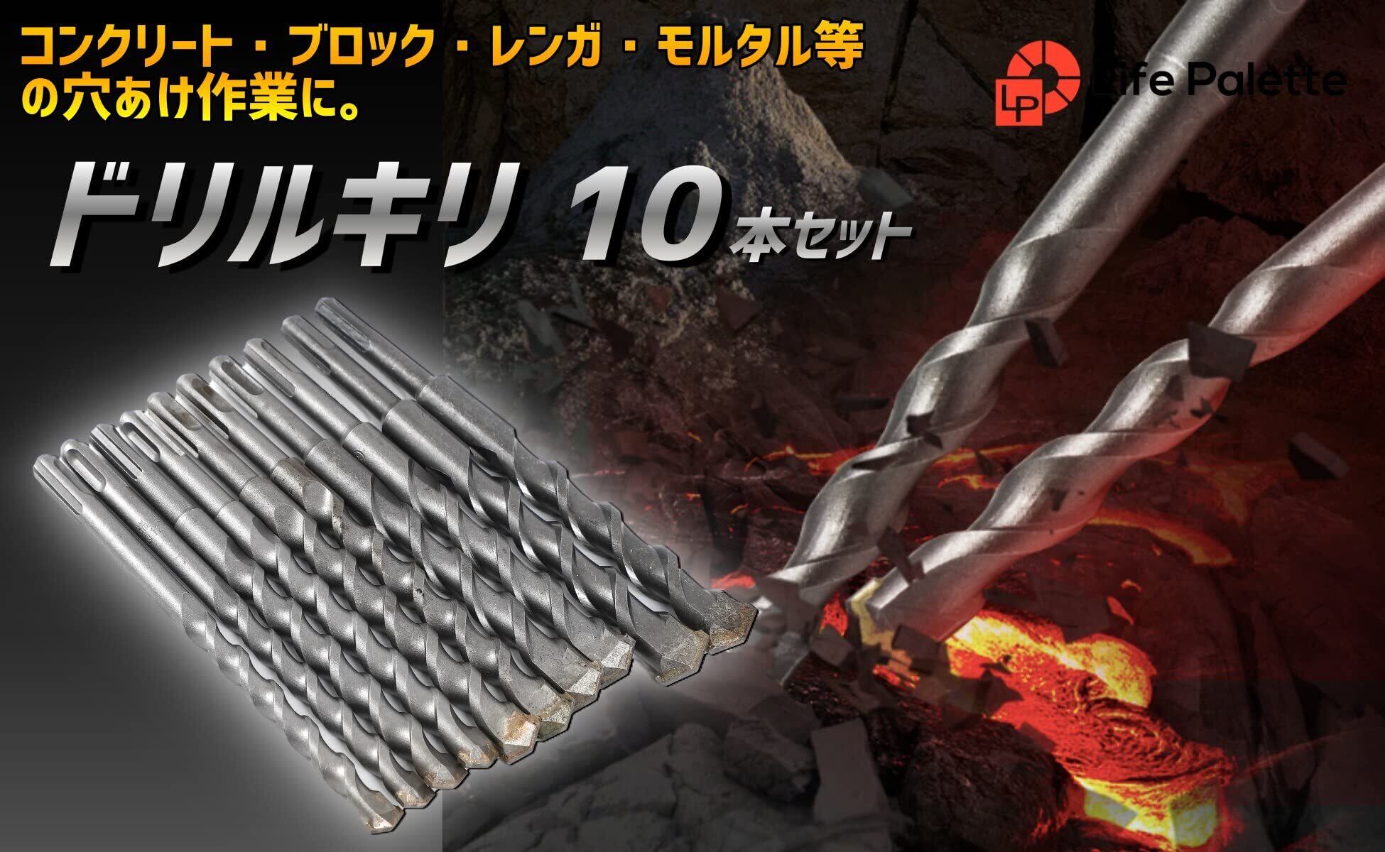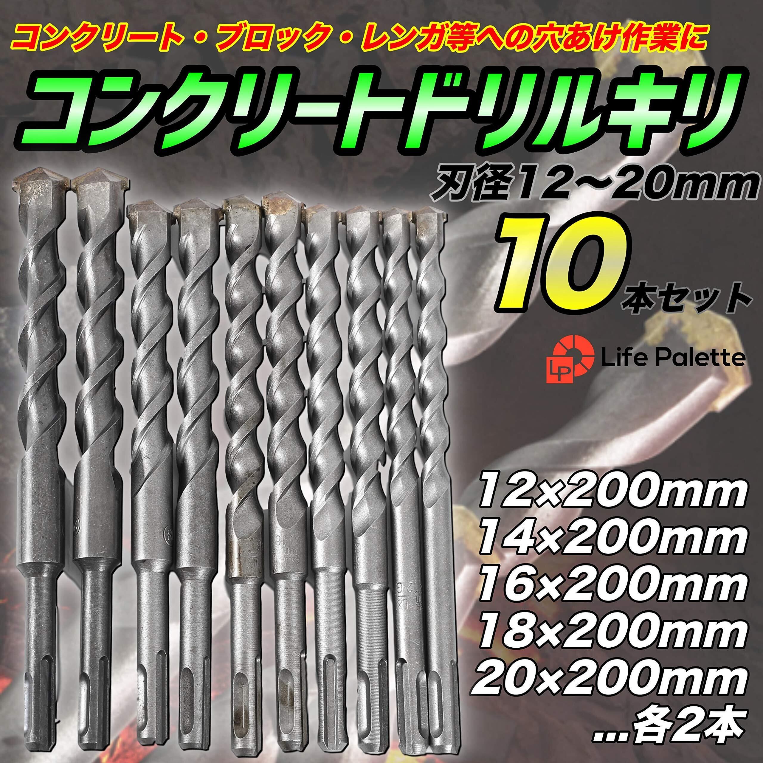 ライフパレット コンクリートドリル ドリル ドリルキリ 穴あけ 刃径12~20mm 全長200mm 10本セット SDS ハンマードリルビット 振動ドリル刃 12mm 14mm 16mm 18mm 20mm