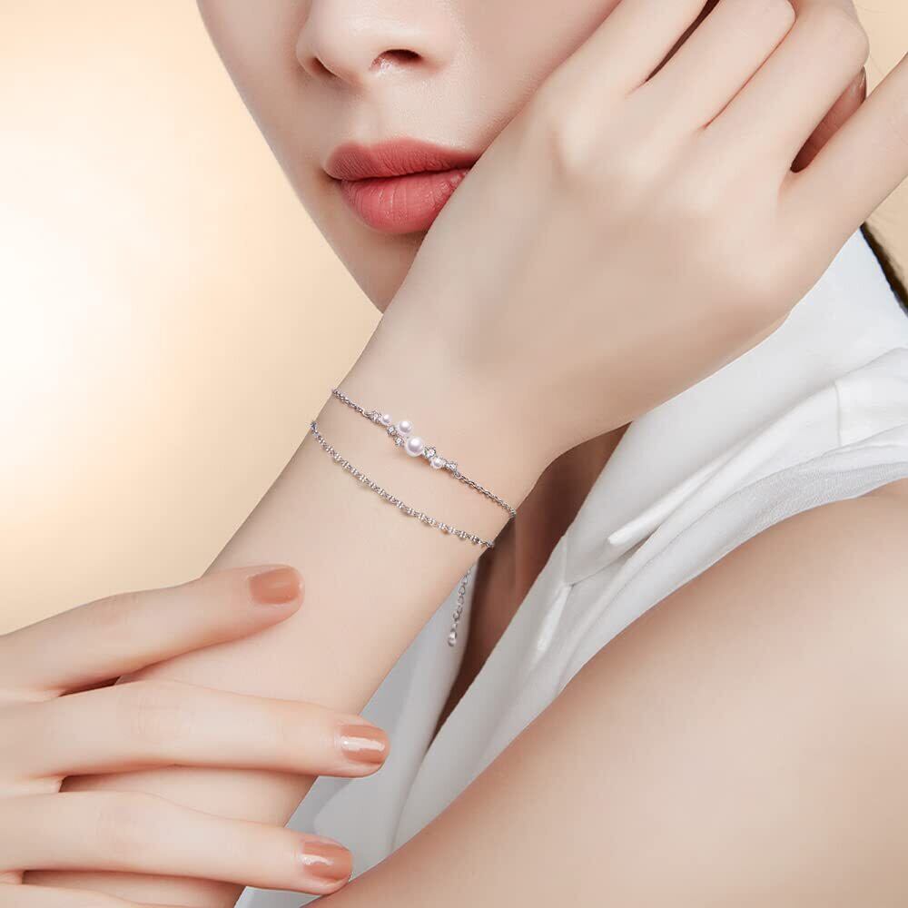 FH.bird パール ブレスレット レディース 結婚式 入学式 金属アレルギー対応 シルバー925 ブレスレット 真珠 2連 シンプル bracelet women 誕生日 プレゼント