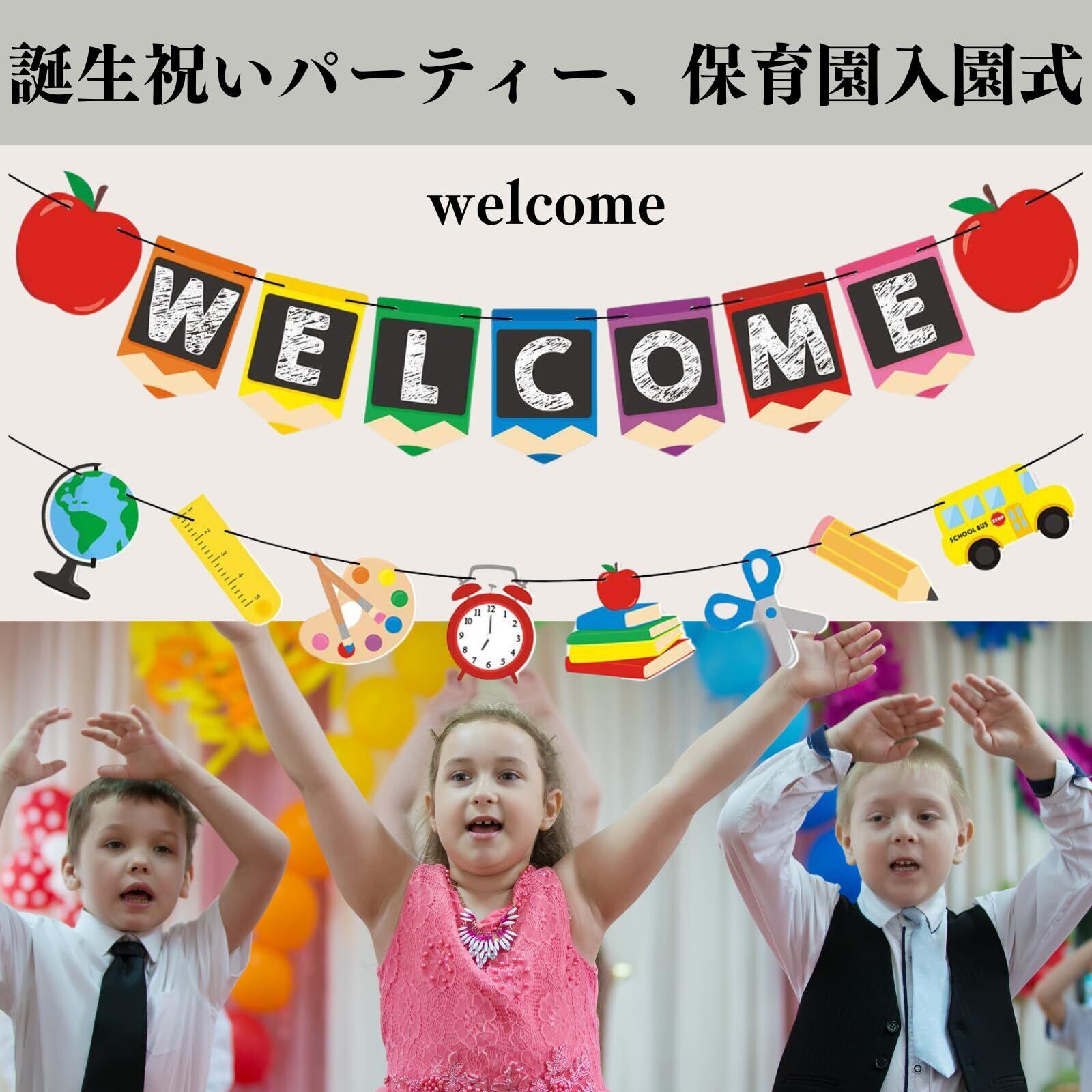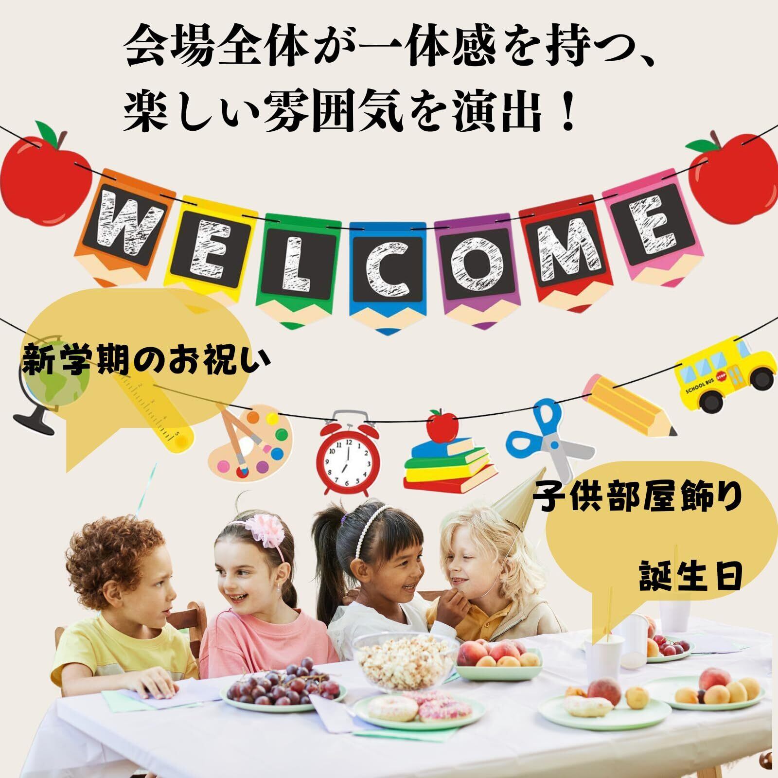 誕生祝いパーティー、保育園飾り、入園式、入学式など特別なイベントにぴったりの飾りつけセットです。カラフルなバナー、可愛らしいデザインが会場を華やかに彩ります。