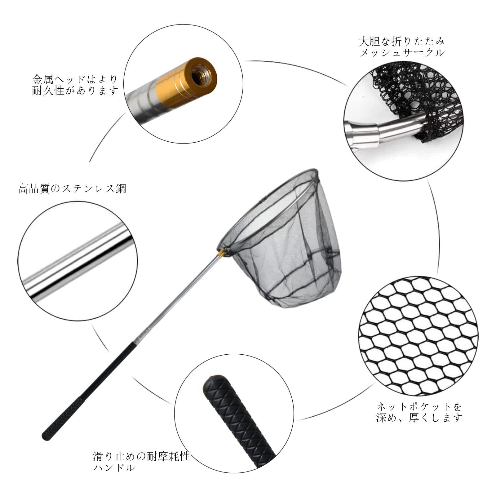 【安全なキャッチアンドクイックリリース】強烈なハニカム構造と理想的な深さのおかげで、魚を逃がしにくく、ネットはキャッチアンドリリースを容易にします。柔らかくて丈夫なネットは魚の鱗を傷つけません。伸縮ロッドのロック機構はプラスチック製のスイッチではありません。その特殊なコーティングにより、取り付けポイントがネットに引っ掛かるのを防ぎ、開閉が簡単です。