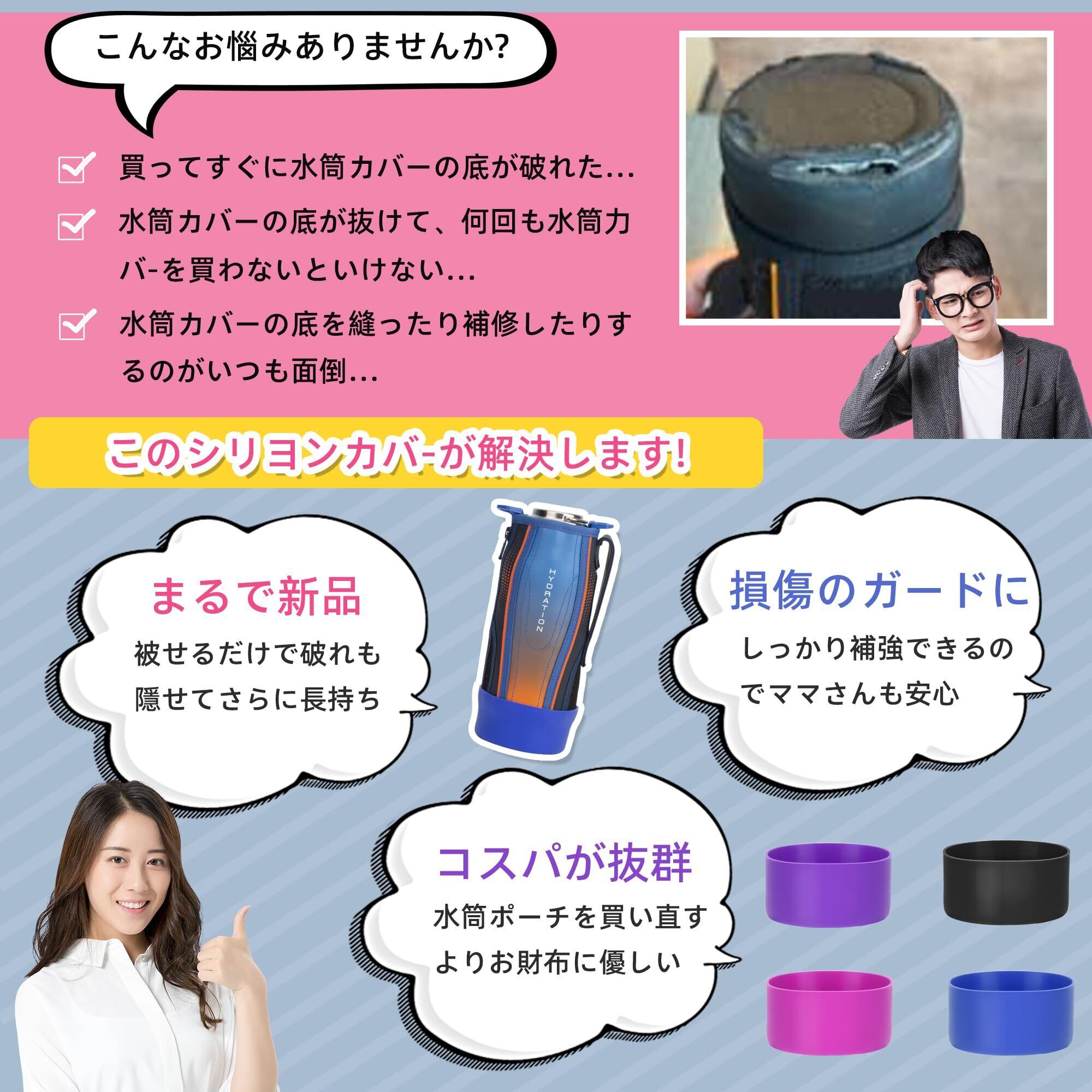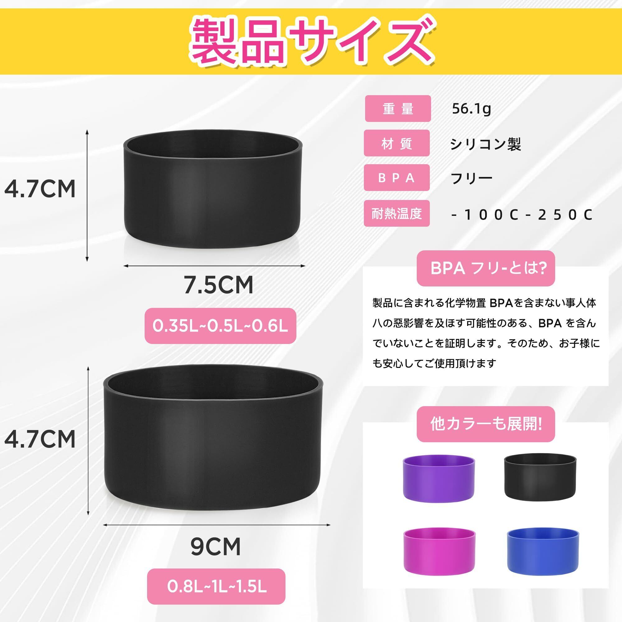 TYESO ウォーターボトルカバー 水筒 底カバー 真空断熱 水筒カバー 対応 保護カバー 底抜け対策 滑りにくい 騒音や傷防止 シリコン製 2個セット+両面テープセット