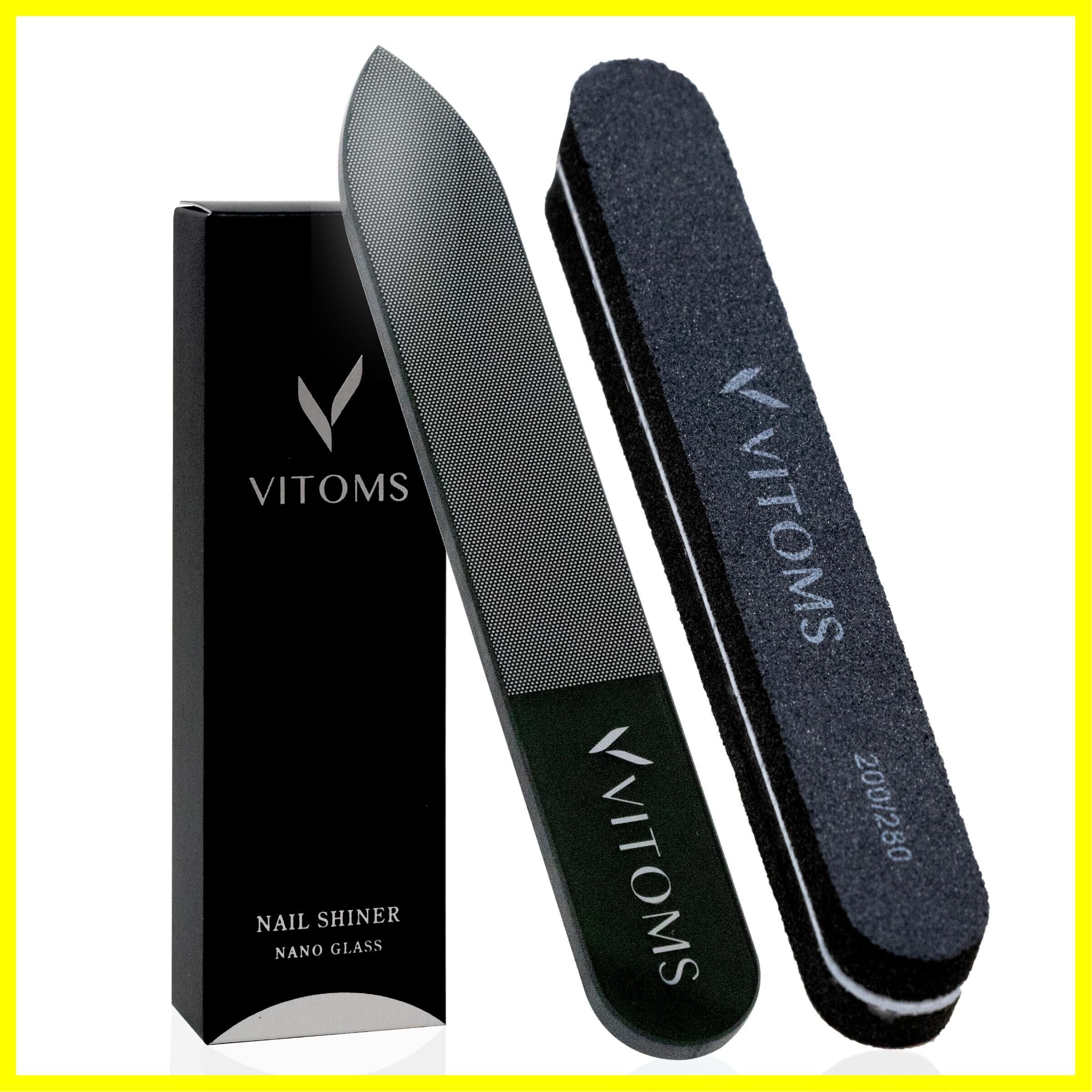 VITOMS 爪やすり 爪磨き 【プロネイリスト推薦】 スポンジファイルセット つめやすり つめみがき つや出し ガラス製 ネイルケア (解説動画付) ブラック,ストレート ギフト プレゼント