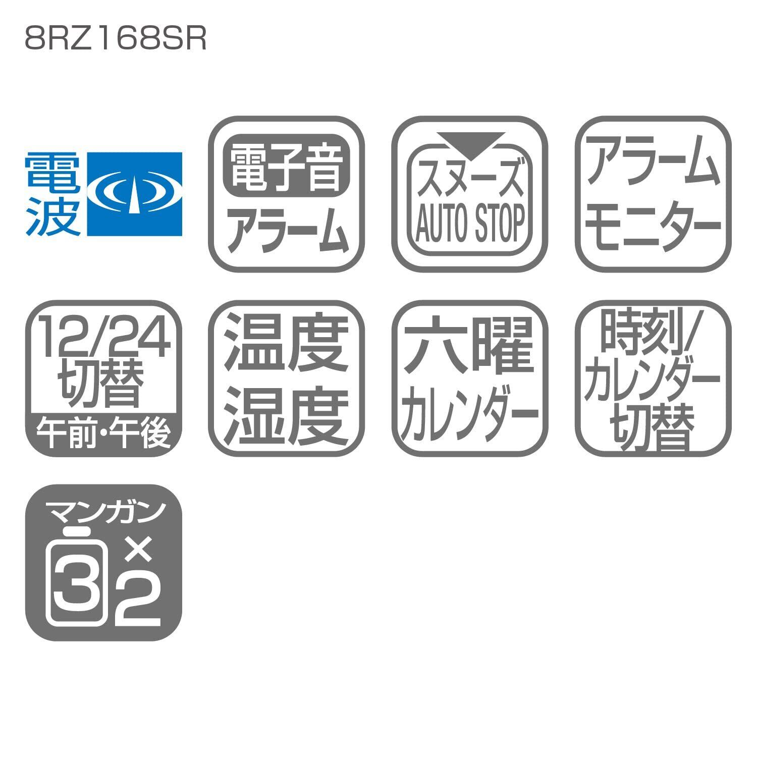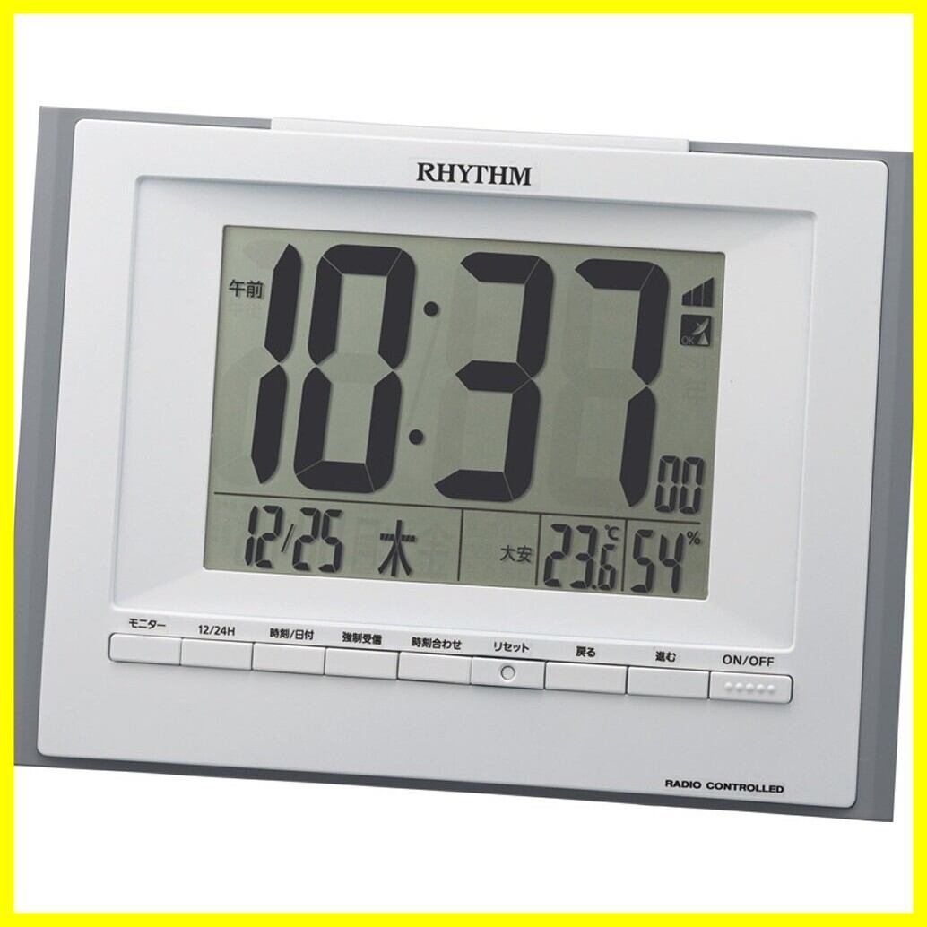 リズム(RHYTHM) 掛け時計 目覚まし時計 電波 デジタル 置き掛け兼用 温度 湿度 カレンダー フィットウェーブD168 グレー 12.5x17.0x2.8cm 8RZ168SR08