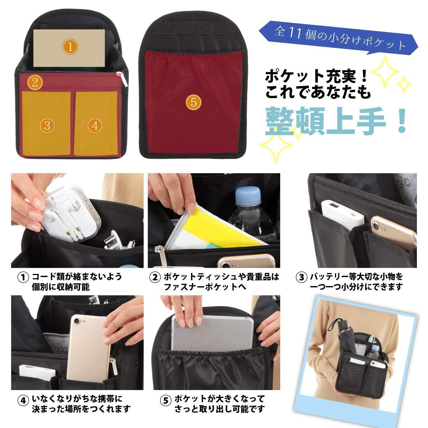VILAU バッグインバッグ リュック 背面ポケットを大きく改良 仕切り 縦型 PP底板付き B5サイズ