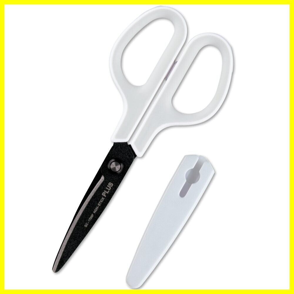 プラス はさみ フィットカットカーブ フッ素コート 低反発グリップ 粘着テープ のり ベタつかない 30度 SC-175SF ホワイト/グレー 34-515