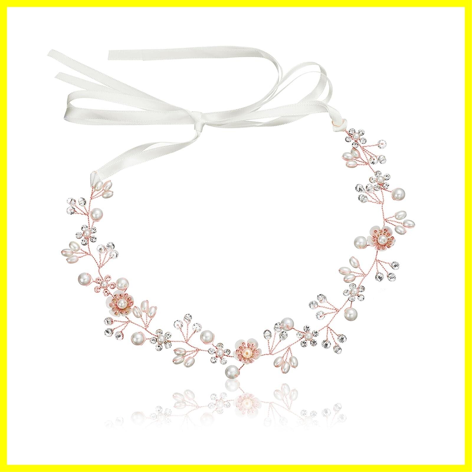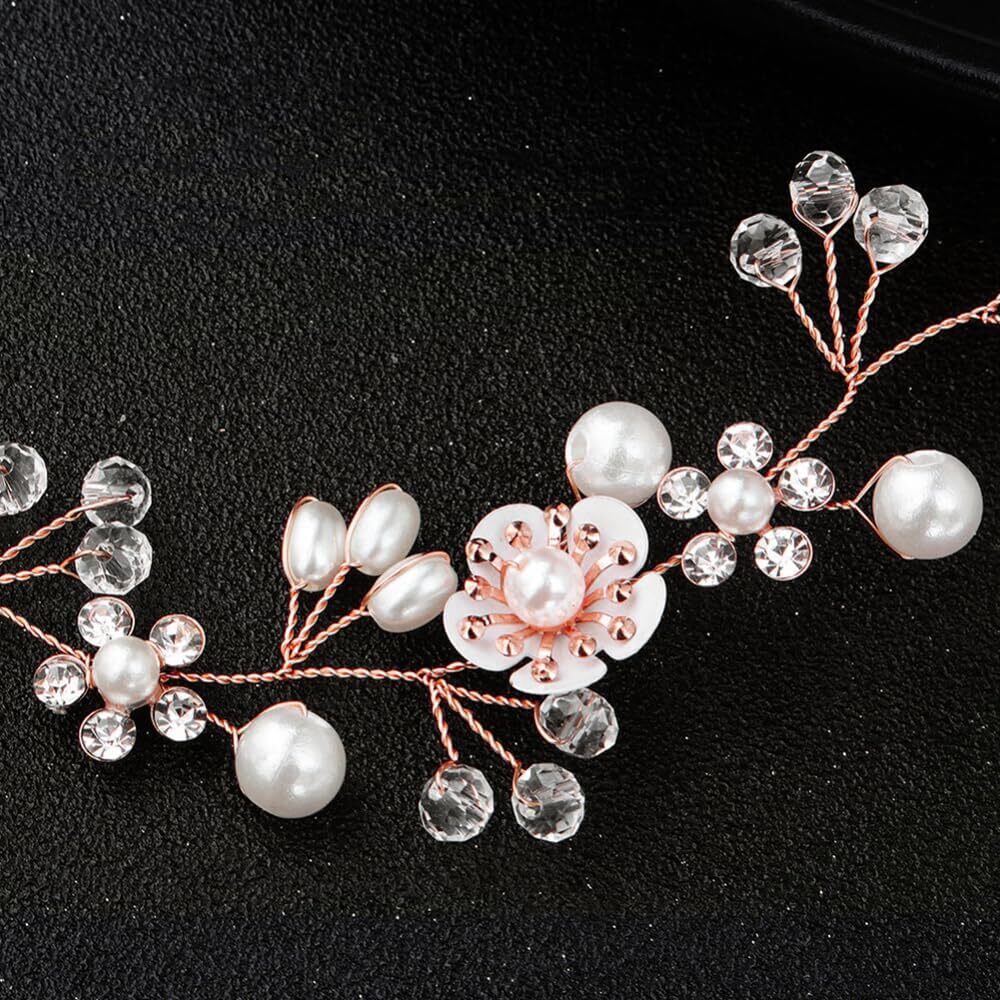 サムコス 髪飾り 花 パール 花かんむり リボン ホワイト ヘッドドレス クリスタルビーズ 花冠 ヘアアクセサリー 結婚式 発表会 披露宴 卒業式 パーティー ダンス 和装 撮影 写真 子供 大人用 (A,ローズゴールド)
