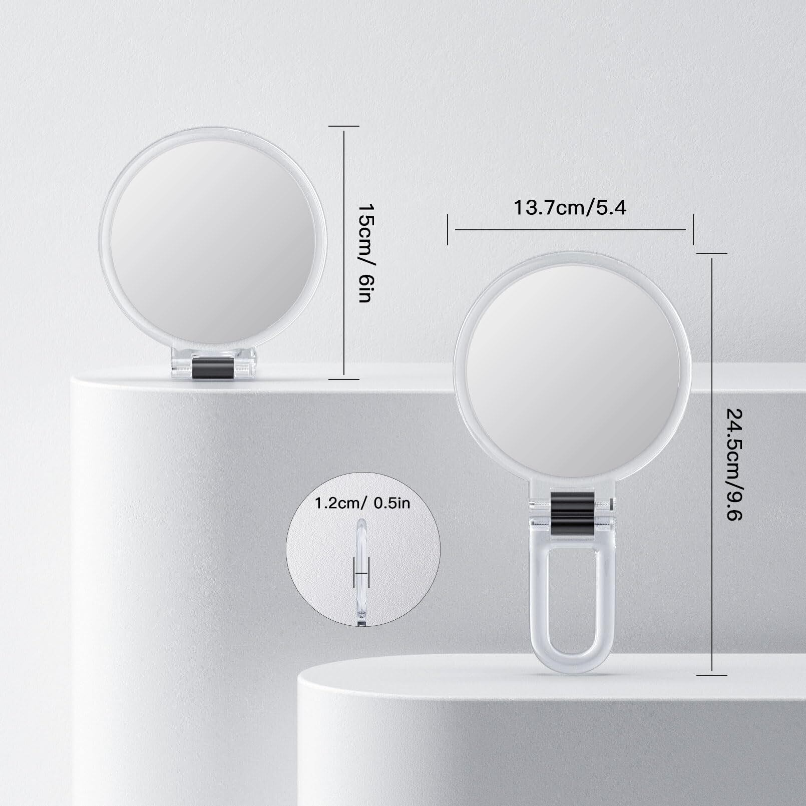 Beautifive 手鏡 拡大鏡 10倍 折りたたみ両面ハンドル付き化粧鏡 コンパクトミラー 10倍と等倍 卓上ミラー コンパクト 持ち運び便利 円形 13.7CM クリア