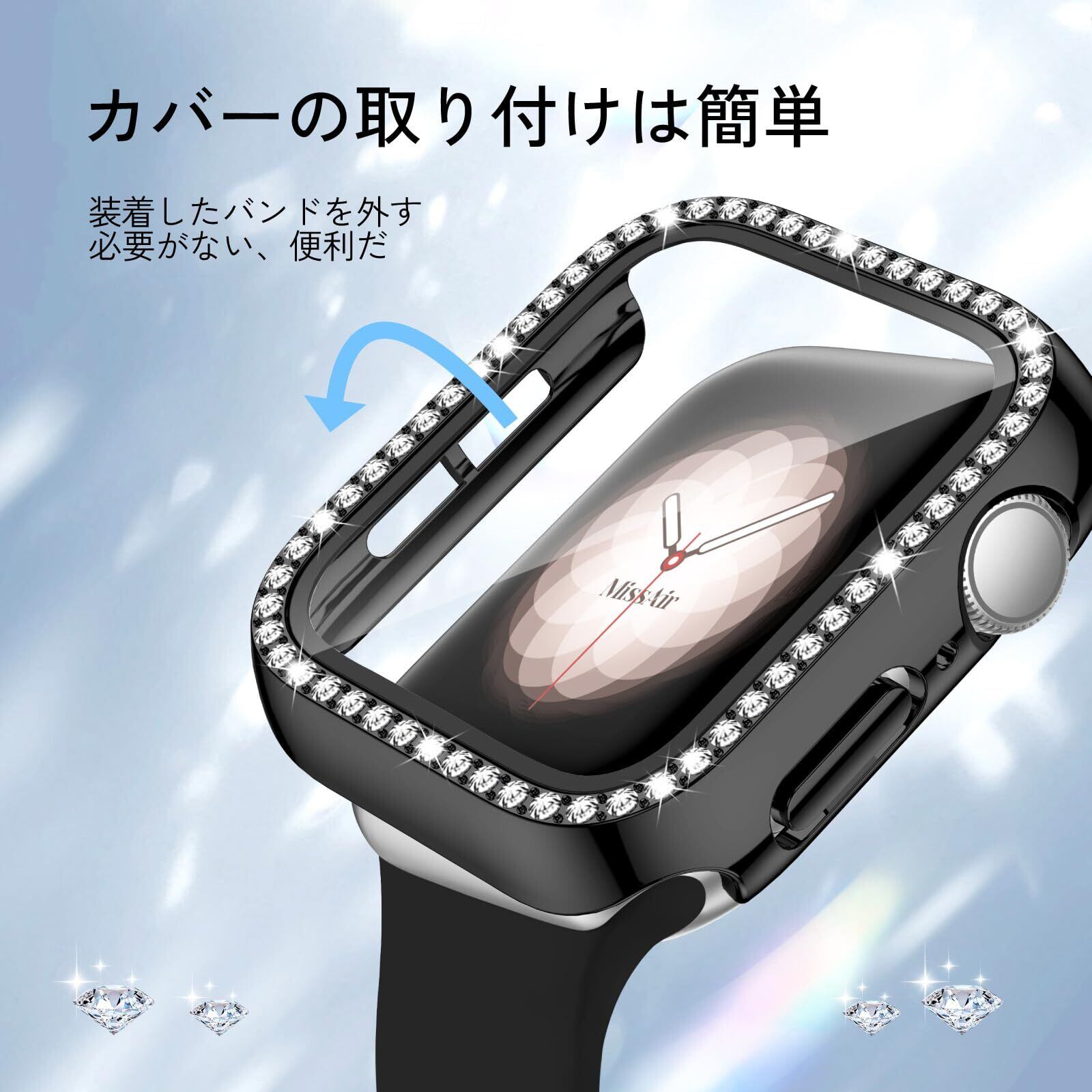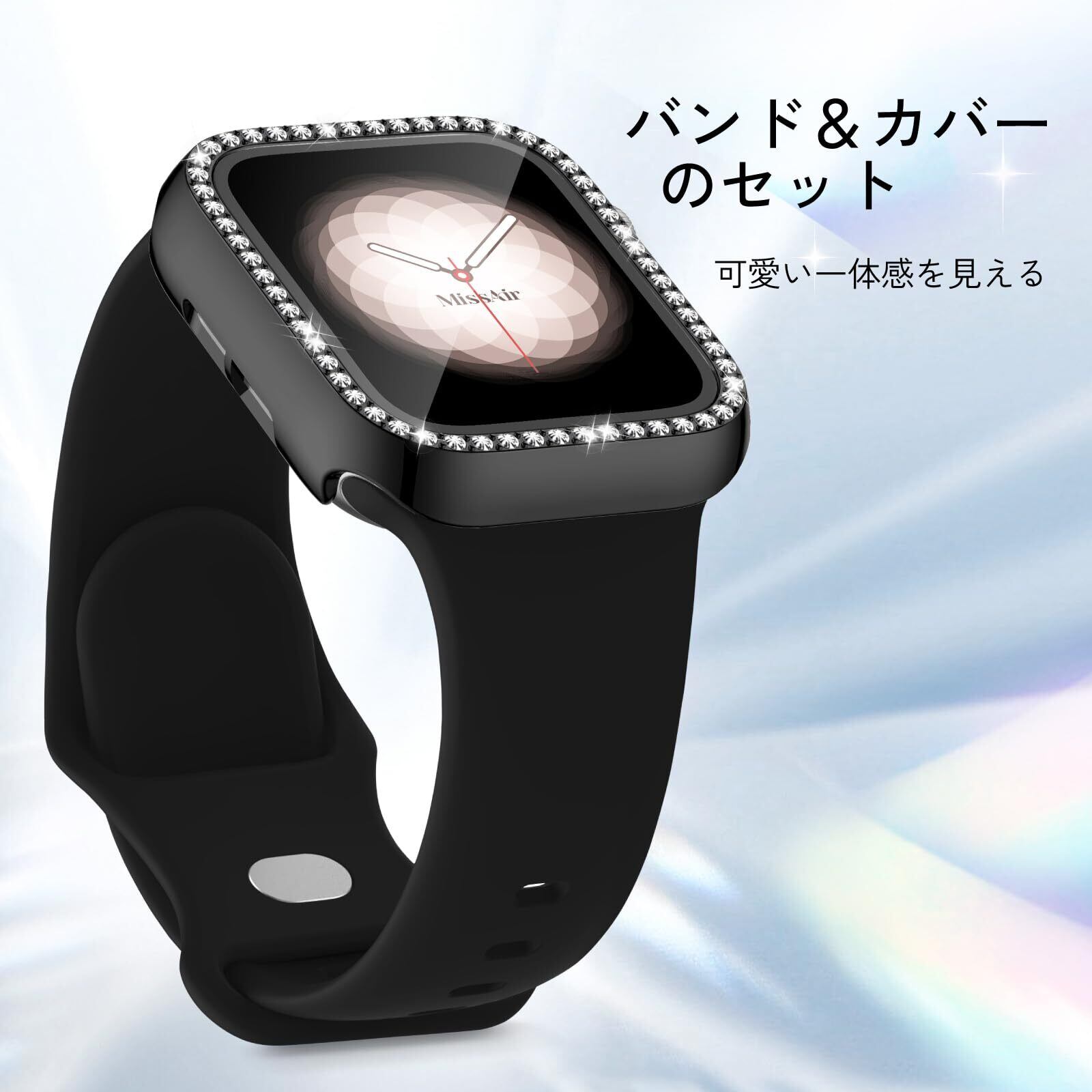 [Missair] コンパチブル Apple Watchと互換性のあるバンド シリコン アップルウォッチ バンド Apple Watch キラキラ カバー付き 互換用のApple Watch バンドとケース 一体型 全面保護 ダイヤモンド 光沢感 オシャレ レディース Series 6 5 4 SEの40mmに対応
