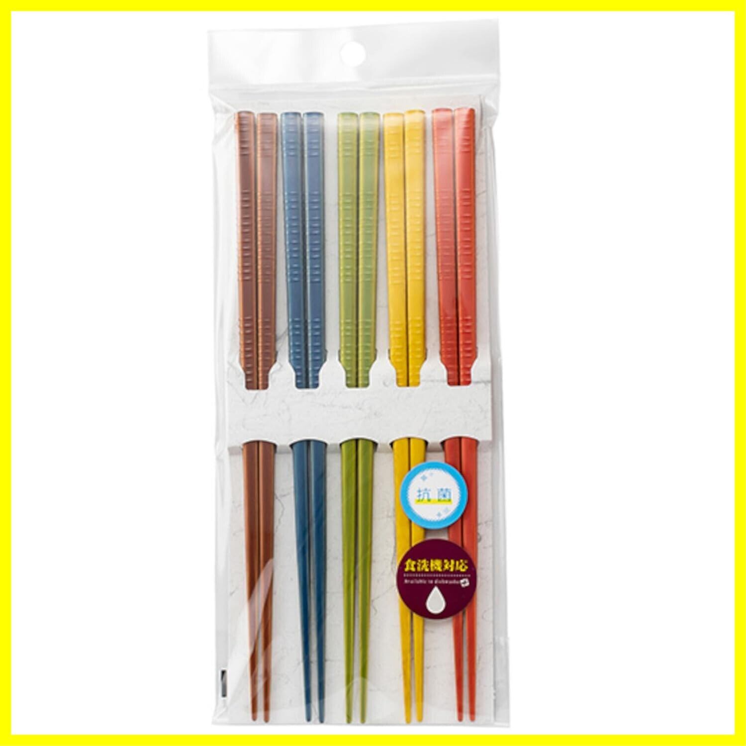 ●カラフルで鮮やかな洗浄機対応の5膳組お箸
