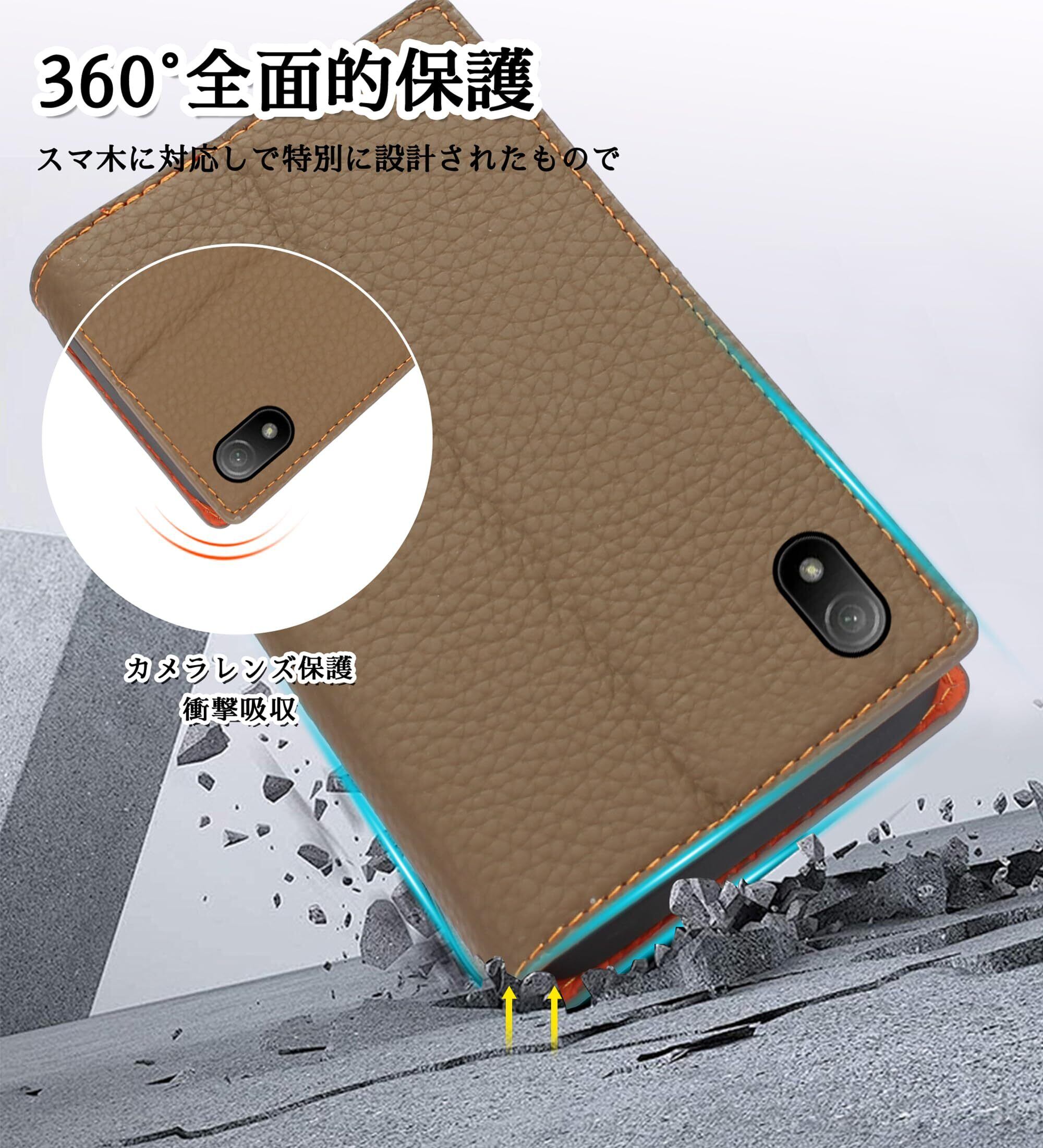 BESTMADE-JP Xperia Ace iii 5G ケース SO-53C SOG08 A203SO 手帳型 高級牛本革 エクスペリア ace iii ケース 手帳型 Xperia ace 3 ケース 手帳型 本革 レザー カバー 全面保護 衝撃吸収 スタンド機能 ストラップ付き マグネット式 カードポケット ギフトボックス付き ブラウン×オレンジ