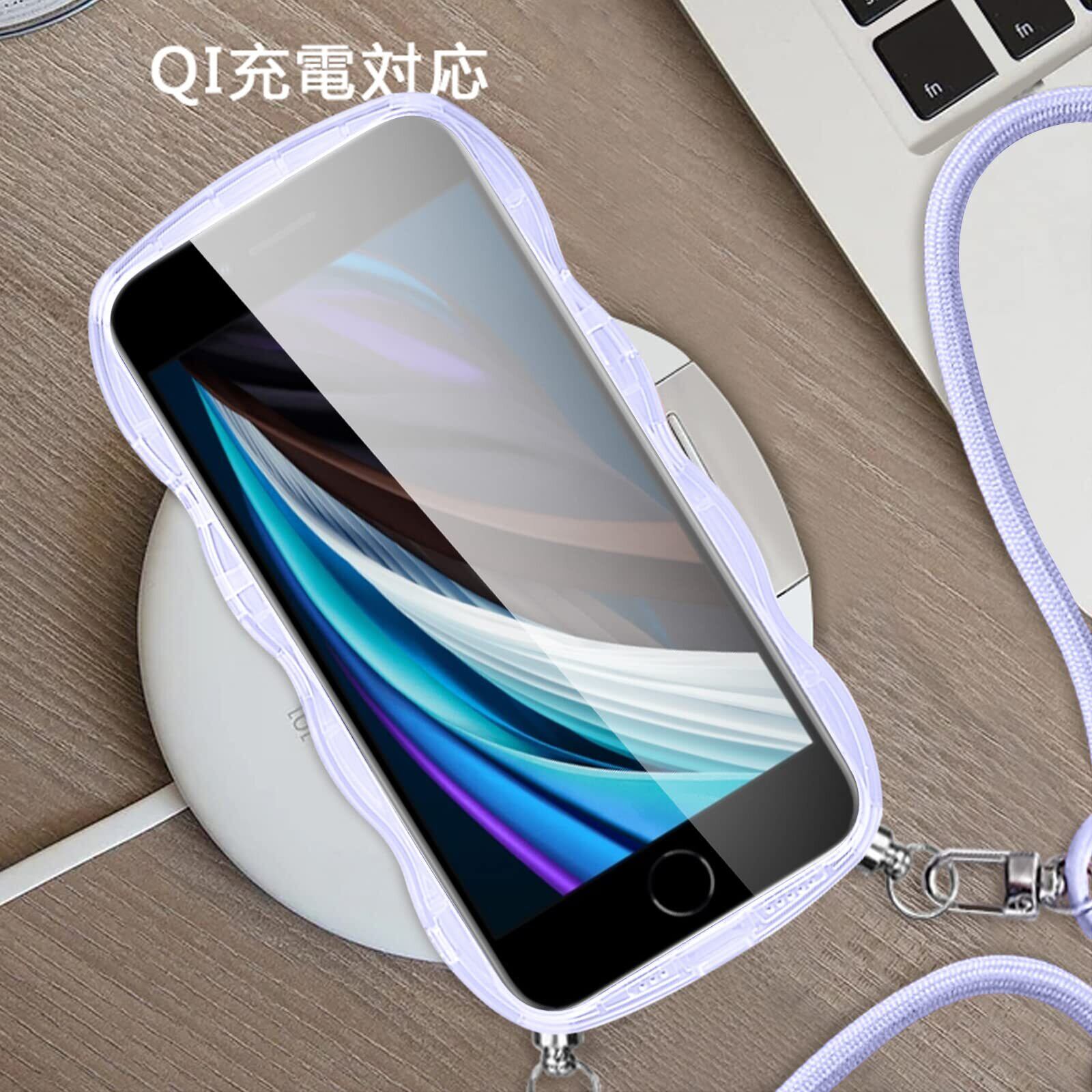 iPhone SE3 SE2 用 ケース ショルダー クリア SE 第3世代 第2世代 iPhone8 iPhone7 カバー スマホケース 創意 個性 肩掛け 首掛け 斜めかけケース 可愛い かわいい 韓国 透明 TPU 薄型 耐衝撃 アイフォンSE3/SE2/8/7(パープル)