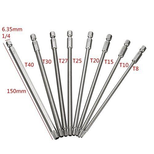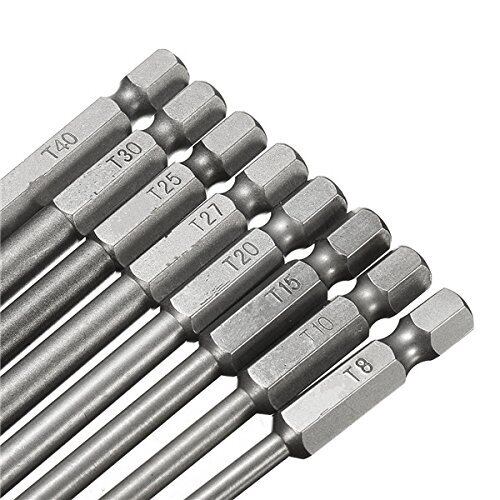 Wolfride 8本組 トルクスドライバー 6.35mm六角シャンク インパクトドライバービット 中空トルクス頭 S2鋼 ドライバービット T8-T40