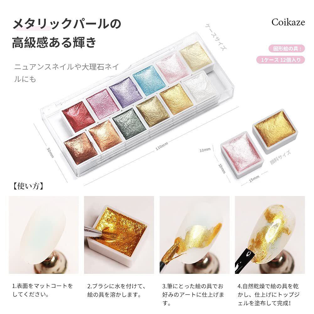 ジェルネイル 水彩パレット ネイル アート 全12種 ニュアンスネイル 水彩ネイル coikaze マーブルネイル 水彩アート たらしこみアート たらしこみネイル メタリックネイル…