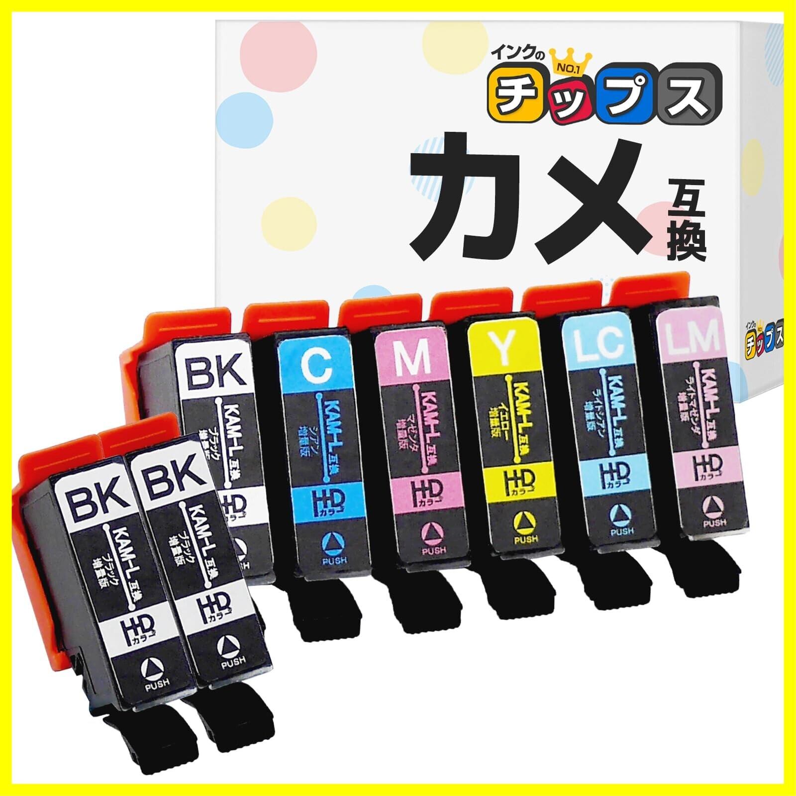 【増量版】 インクのチップス エプソン用 KAM(カメ) 互換インク KAM-6CL-L 6色セット+ブラック2本 染料 <発色の良いHDカラー使用> <残量検知対応ICチップ搭載> 対応機種:EP-881A EP-882A EP-883A EP-884A EP-885A EP-886A