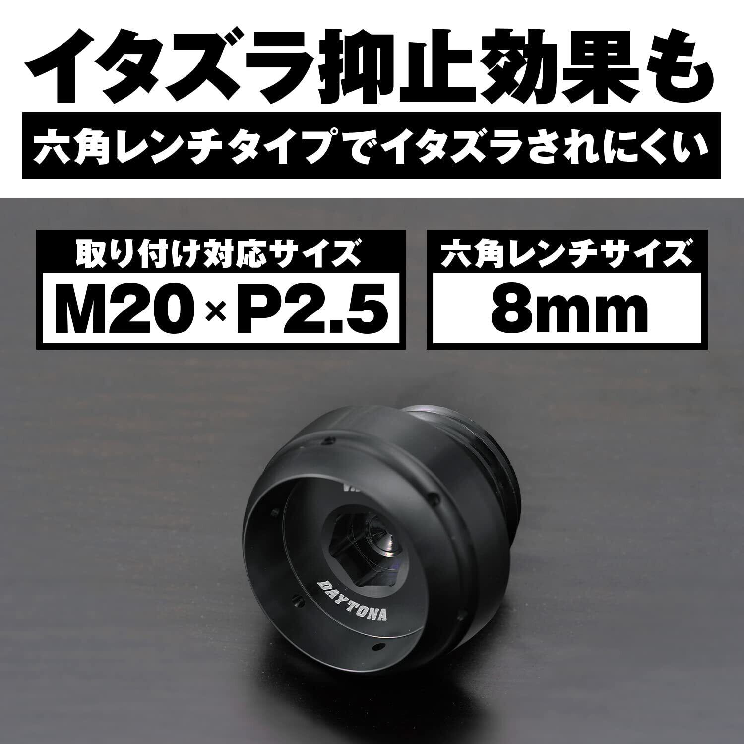 デイトナ(Daytona) アルミビレット バイク用 オイルフィラーキャップ Oリング付属 イタズラ抑止 アルミ削り出し バレットタイプ M20×P2.5 ブラック 98404