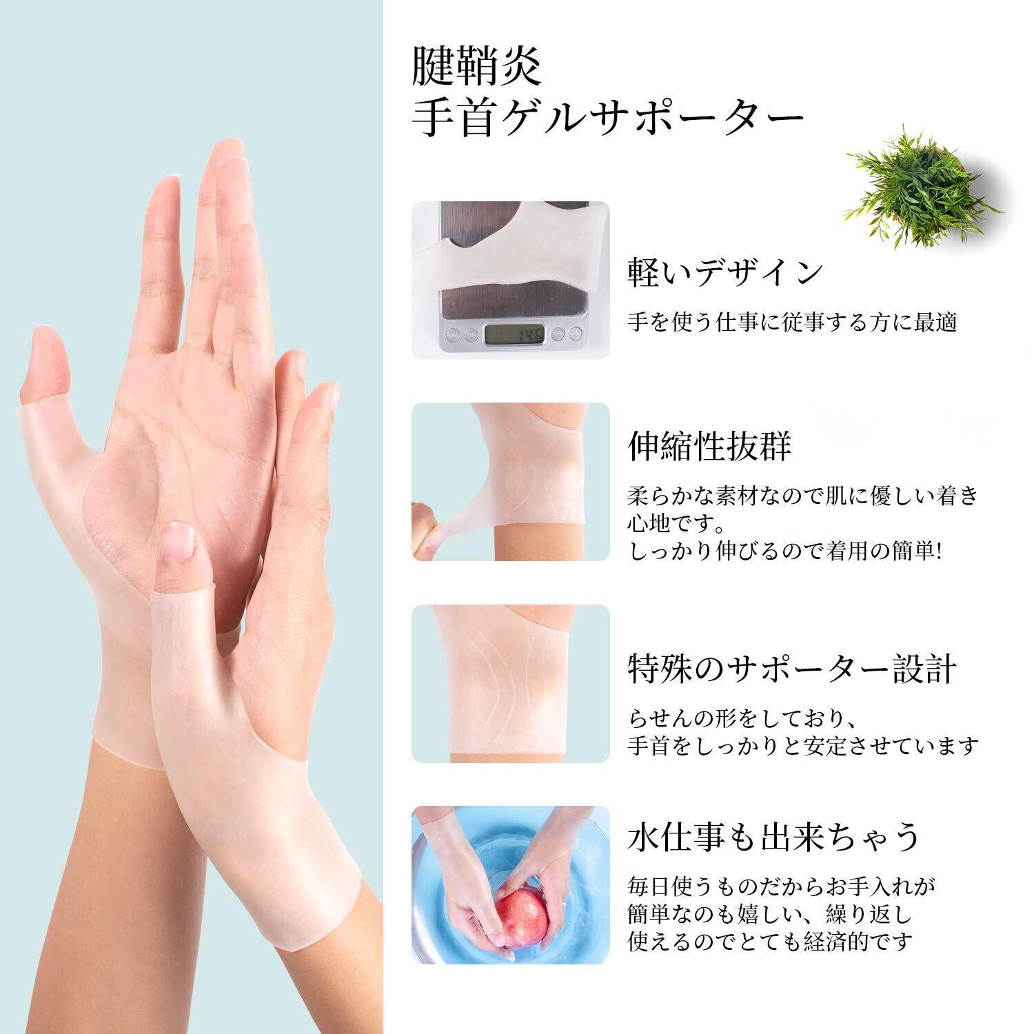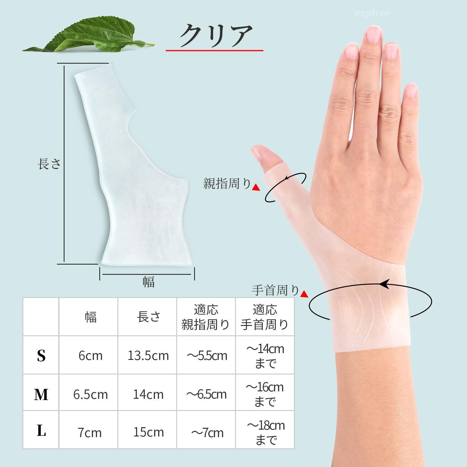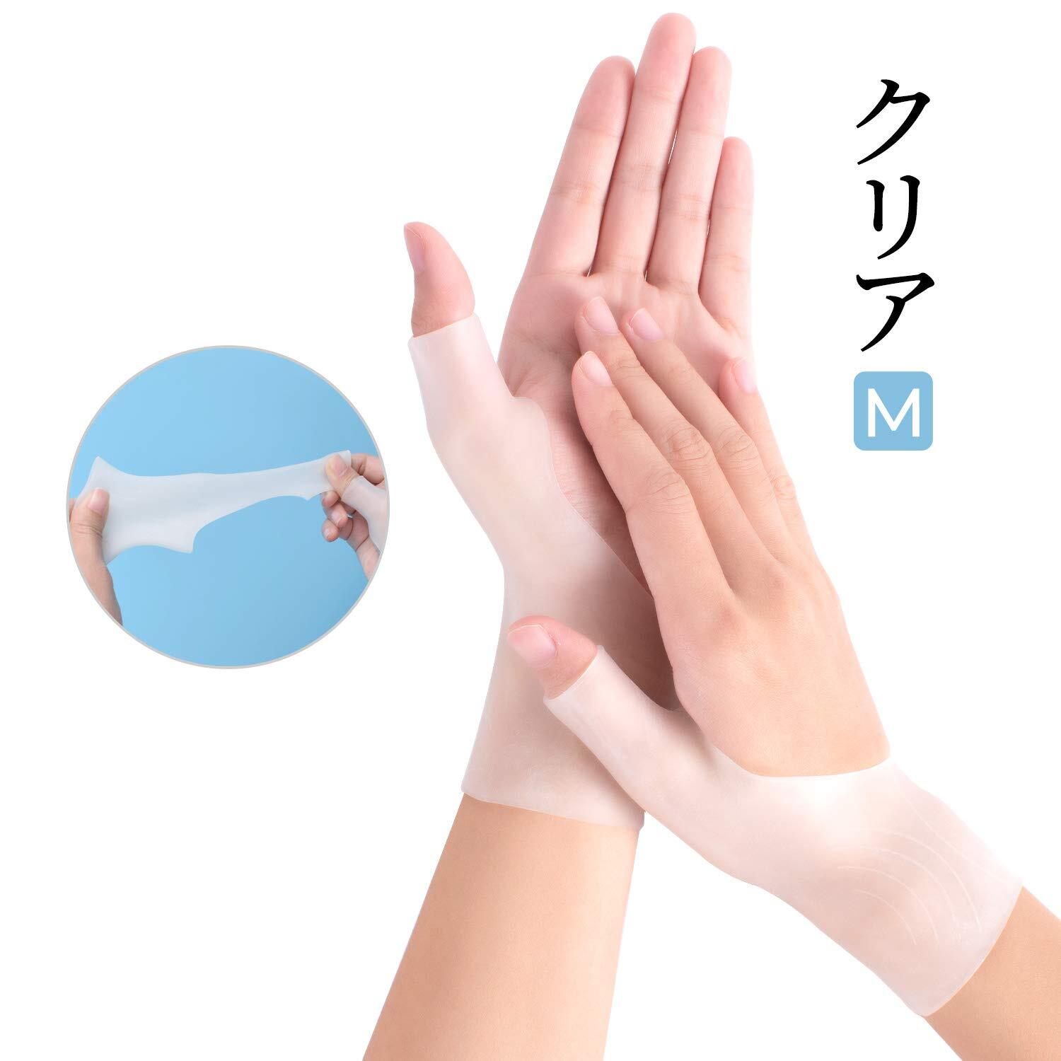 「2枚組」手首サポーター 親指の固定 腕 サポーター 親指 リストバンド シリコン素材 手首 水仕事 家事OK 男女兼用(クリアーM) 左右セット