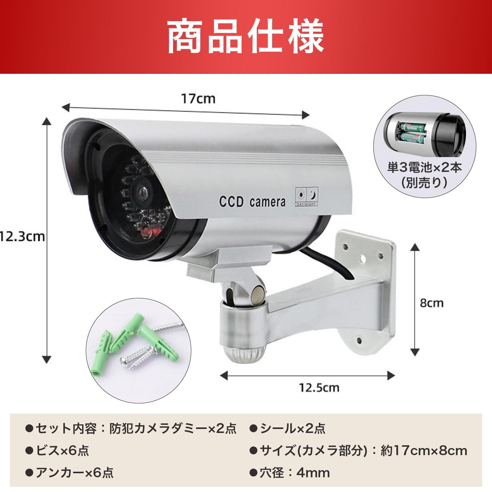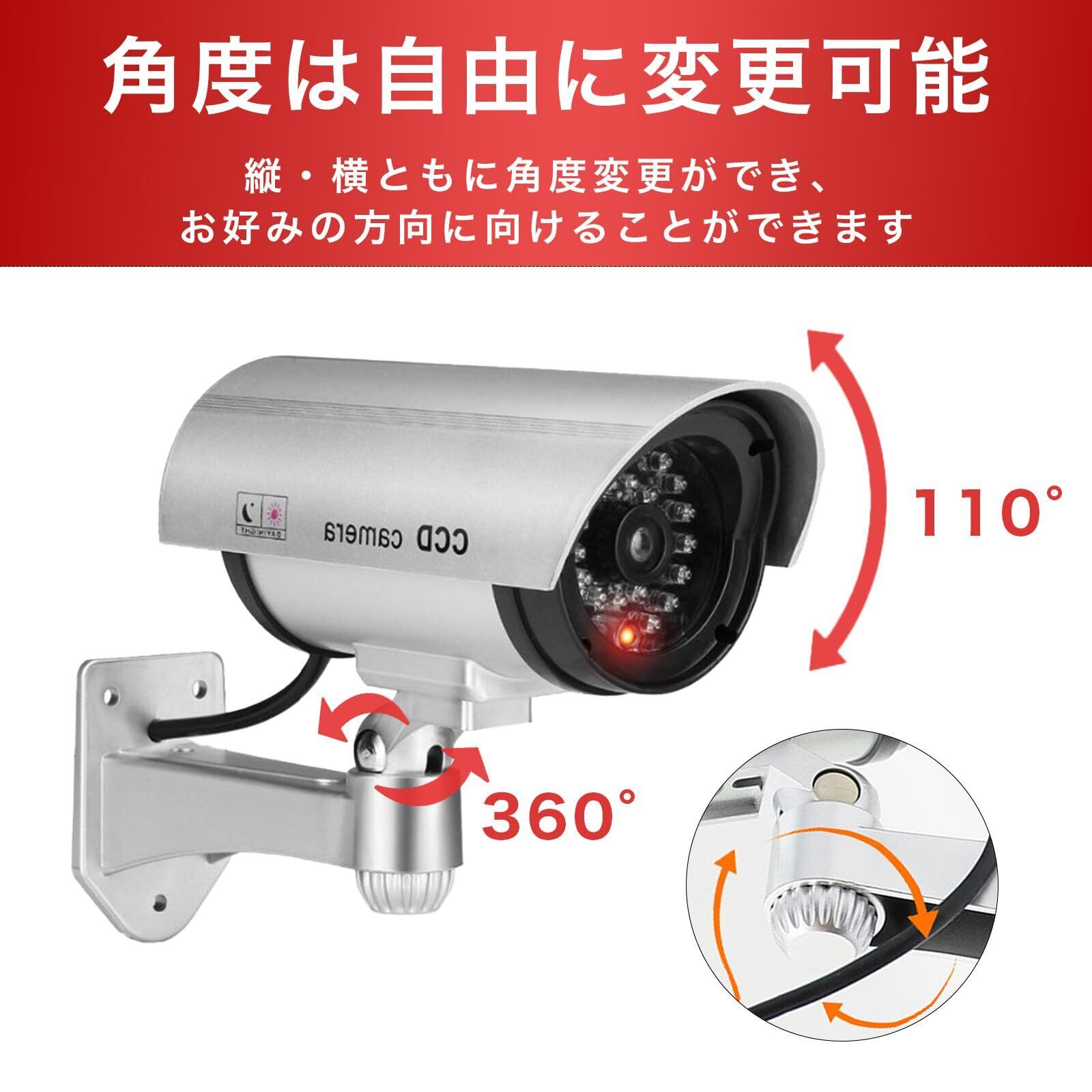 ダミー防犯カメラ 2台セット 屋外対応 赤色LED点滅 360°調整 電池式 取付簡単 ステッカー付