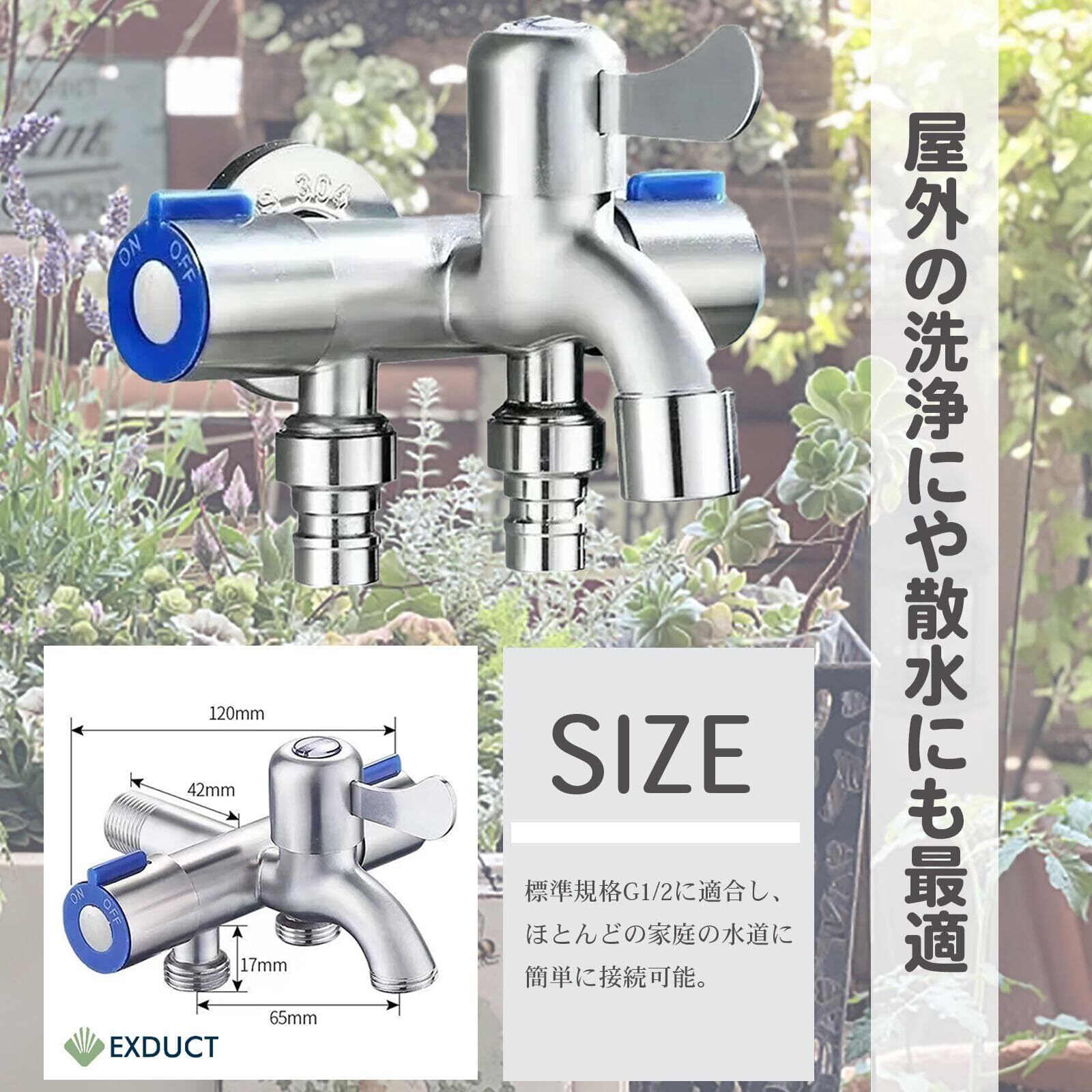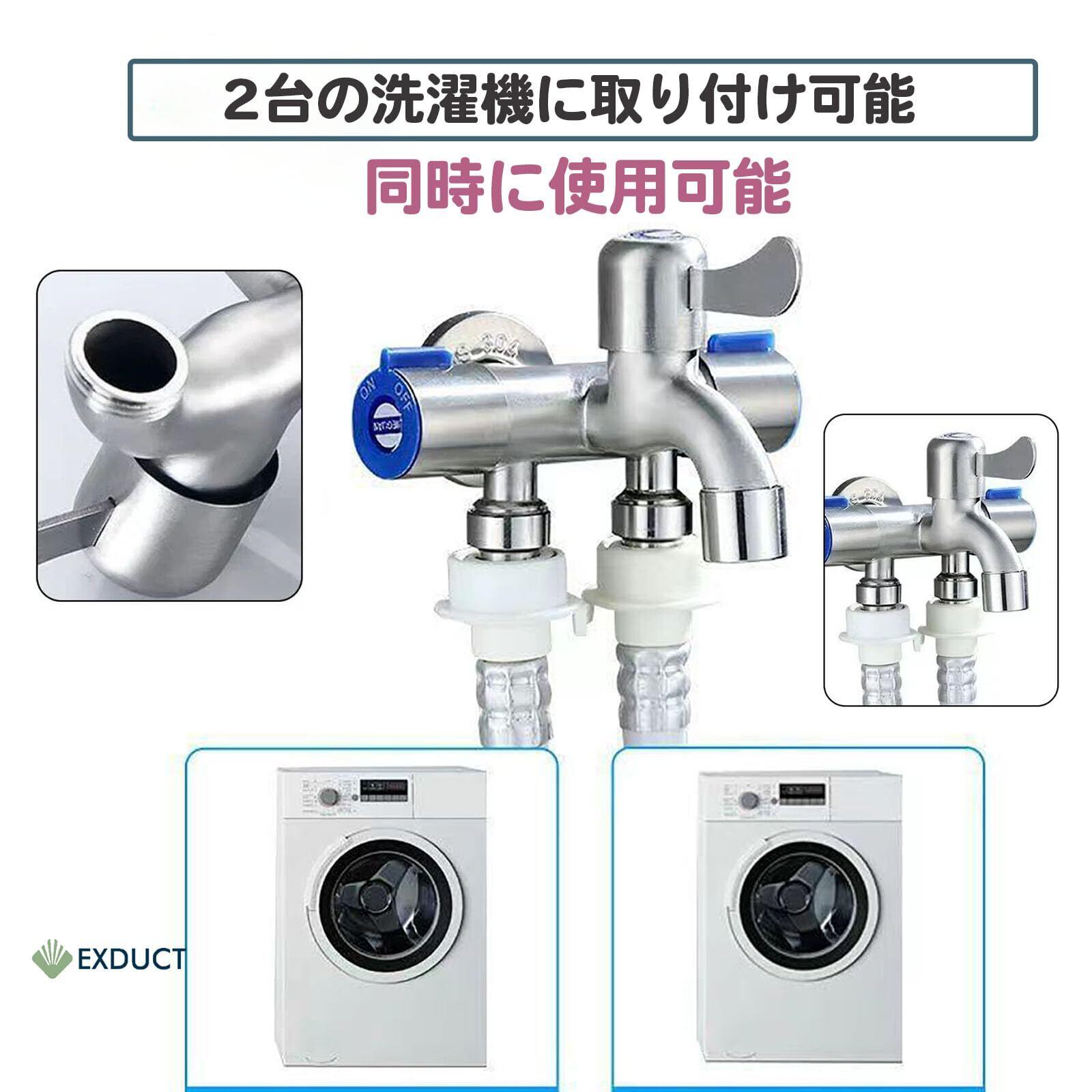 EXDUCT 3分岐蛇口 洗濯機用水栓 3分岐止水栓 ステンレス製 三股蛇口 標準G1/2 洗濯 お風呂 洗面所 浴室 ベランダ ガーデン 3口 蛇口