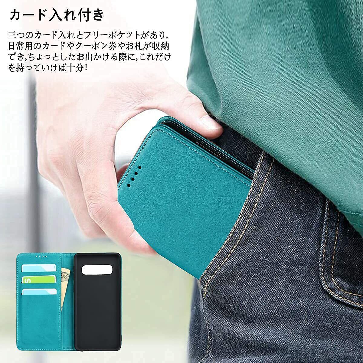 Galaxy S10 ケース 手帳型 SCV41 SC-03L 対応 エス10 カバー サムスン ギャラクシー S 10 スマホケース 携帯カバー 手帳型 カバー 財布 適用 case 【iCovercase】 内蔵マグネット 携帯カバー カードポケット スタンド機能 落ち着いた色 レトロ ターコイズ
