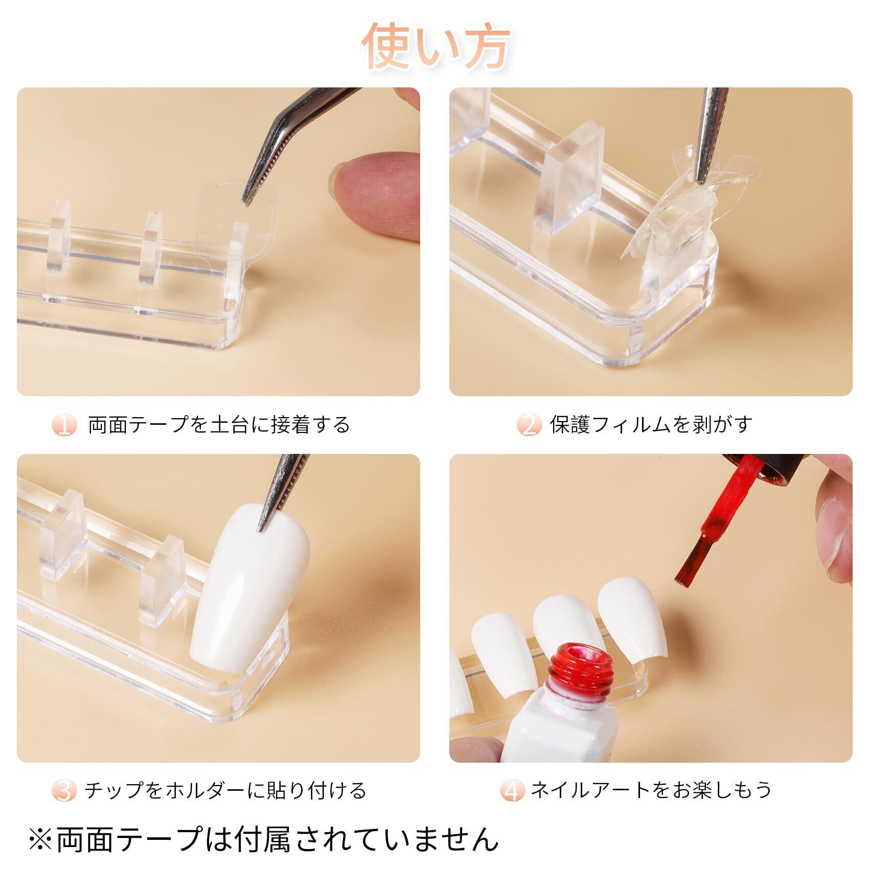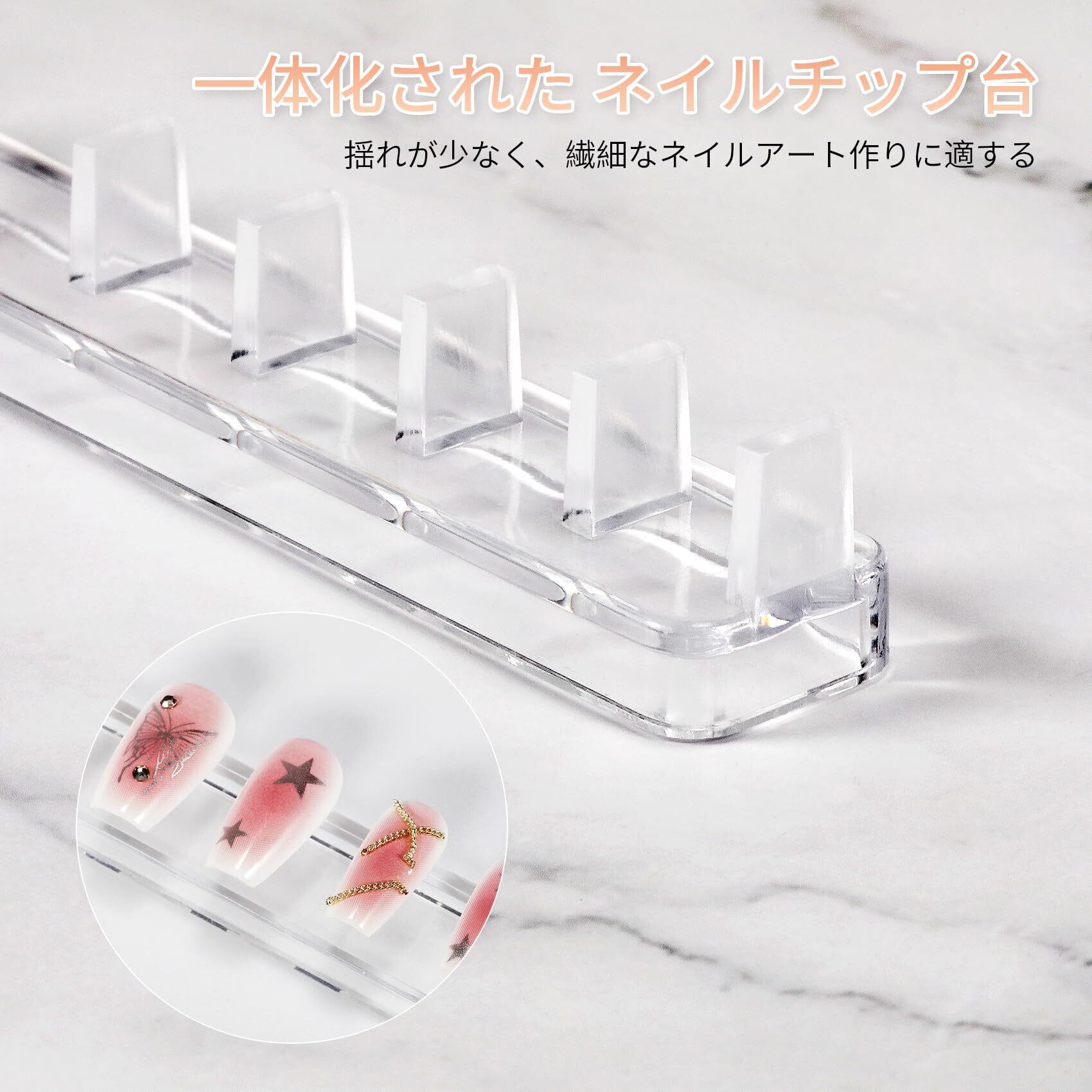 一体型のデザイン:一体化されたジェルネイル チップスタンドは練習中も台座にしっかりと固定され、滑ったり落ちたりすることが少なく、特に繊細な作業に役立ちます。※両面テープの使用は必要ですが、本製品は付属されていないことをご了承ください