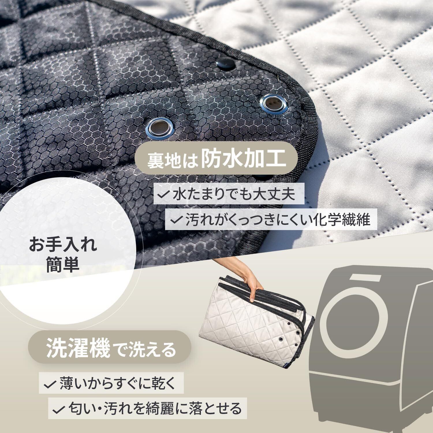 【水洗いできる】汚れや匂いが気になったら洗濯機で丸ごと洗濯できます。シートを蛇腹に畳んだ状態で洗濯ネットへ入れて別の衣類と分けてください。中性洗剤のみを使い、手洗いモードで優しく洗濯することをおすすめします。洗濯後はシワになりにくいように伸ばして干してください。(ポリエステル製のためアイロンは使えません。)