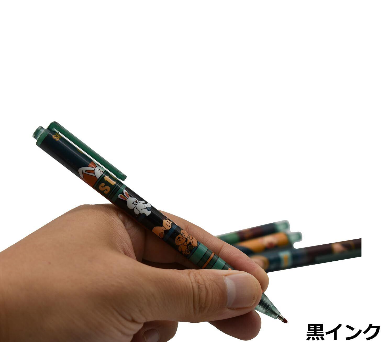 Maydahui かわいい 動物 ノック式 ボールペン 12本セット 0.5mm 黑 インク 猫 うさぎ クマ ジェルボールペン おしゃれ 文房具 筆記用 ギフト プレゼント