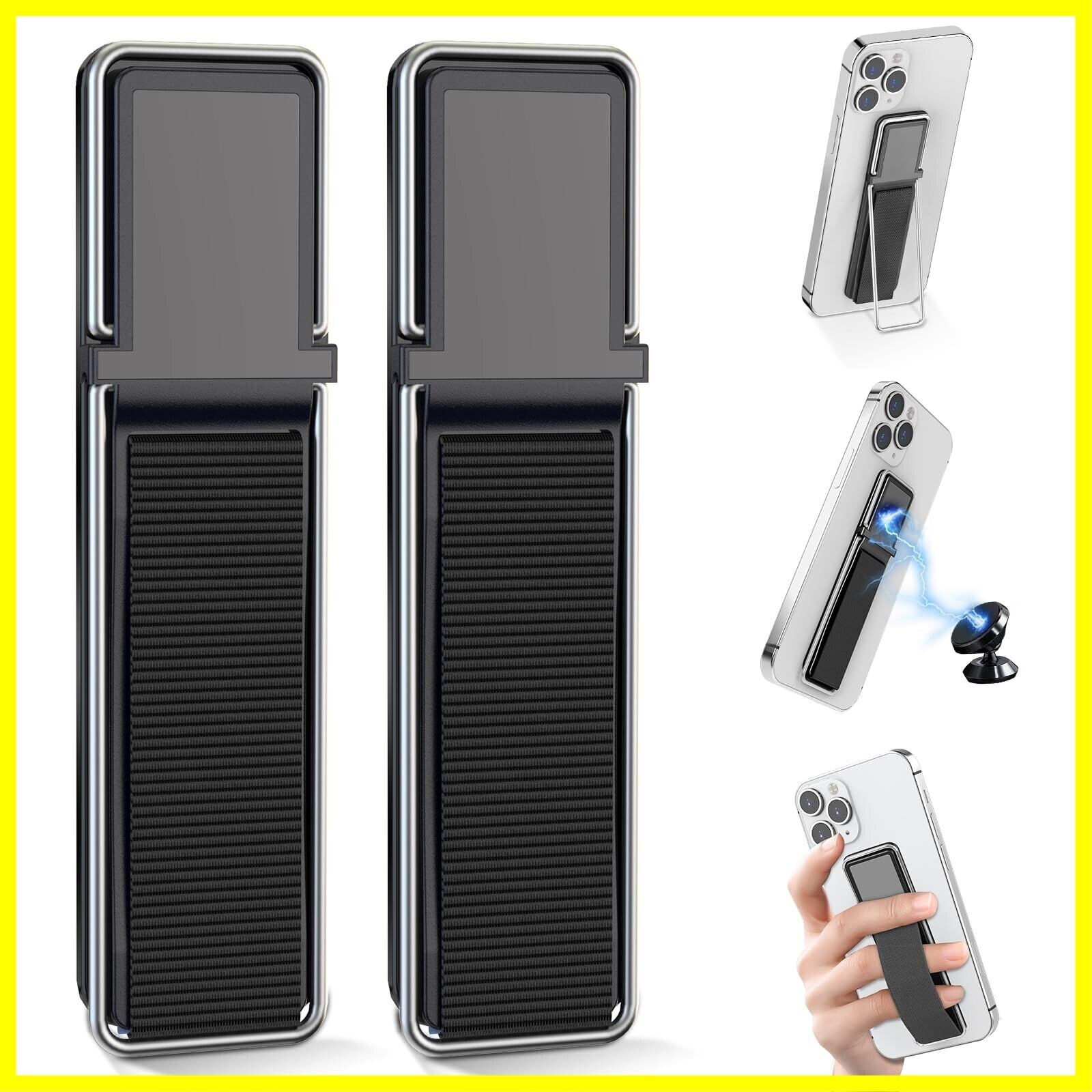 【3WAY使用】フィンガーストラップのおかけて、片手でスマホを操作できる。スマホスタンドとして、縦置き 横向きも全然問題ありません。金属が内蔵して、車載用ホルダーに固定することもできる。