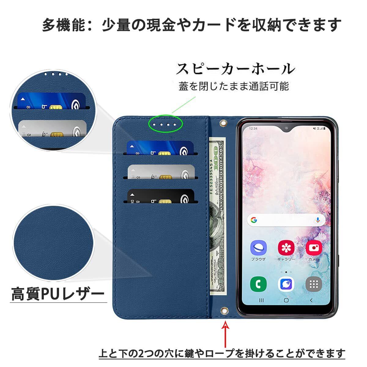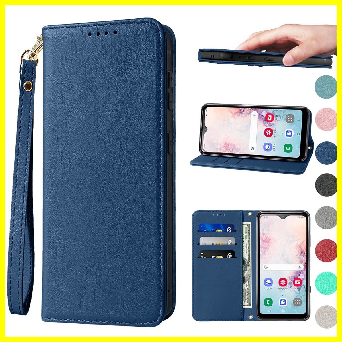 Galaxy A22 5G ケース 手帳型 高質PUレザー Galaxy A22 5G カバー SC-56B ケース 携帯カバー 耐衝撃 皮革 内蔵マグネット開閉式 ベルトなし スマホケース おしゃれ カードポケット スタンド機能 便利 スプラット同梱 携帯ケース ブルー