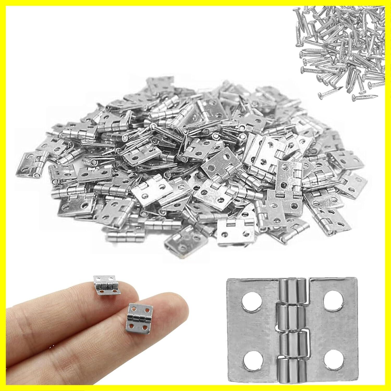 蝶番 ミニ蝶番 8*10mm 50個セット ネジ付き 4穴 木箱用のヒンジ ヒンジ 金具 ドア用金物 手作り パーツ 木工 家具補修 DIYミニチュア (銀色)