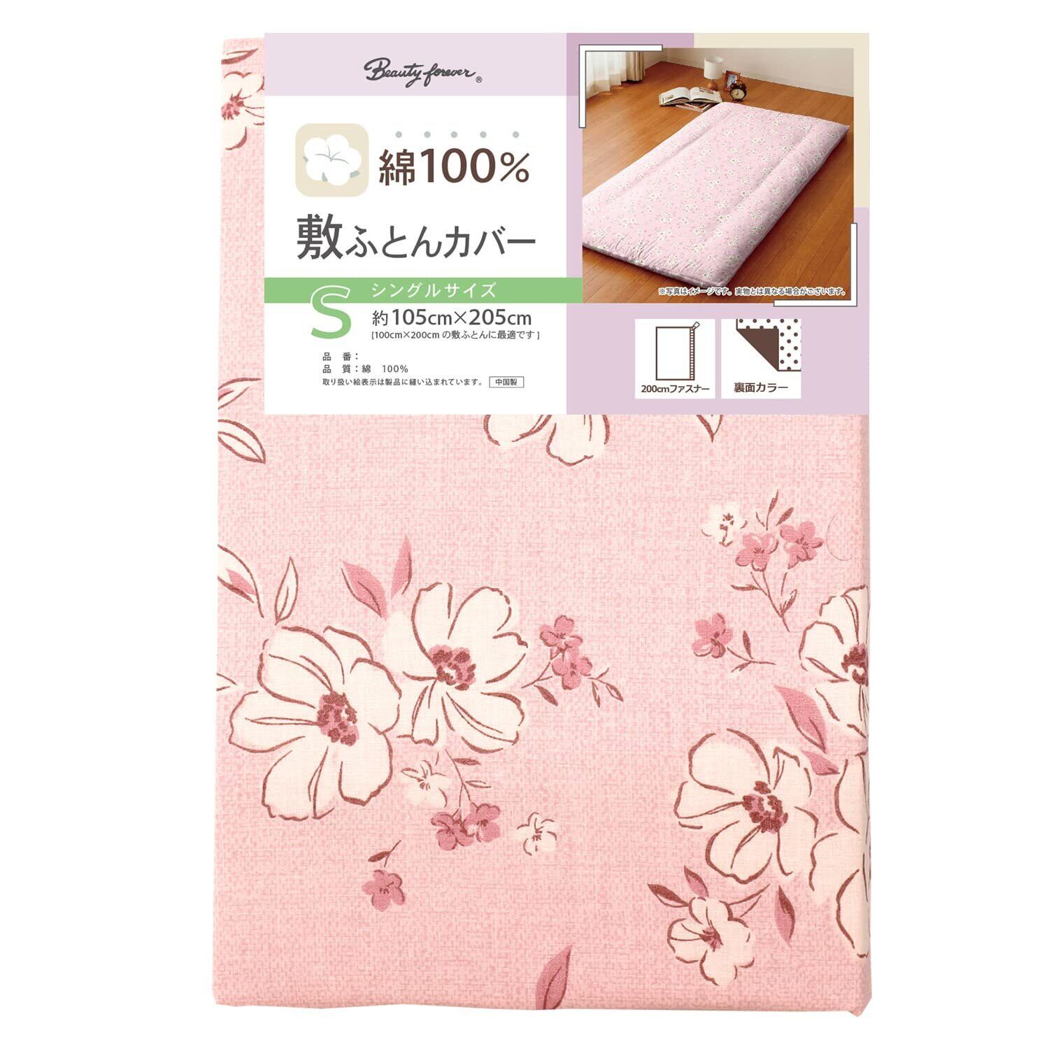 メリーナイト 敷き布団カバー 「アネモネ」 ピンク シングル 約105×205cm 綿100% 吸湿性 通気性 心地よい肌触り オールシーズン 洗える CT13013-16
