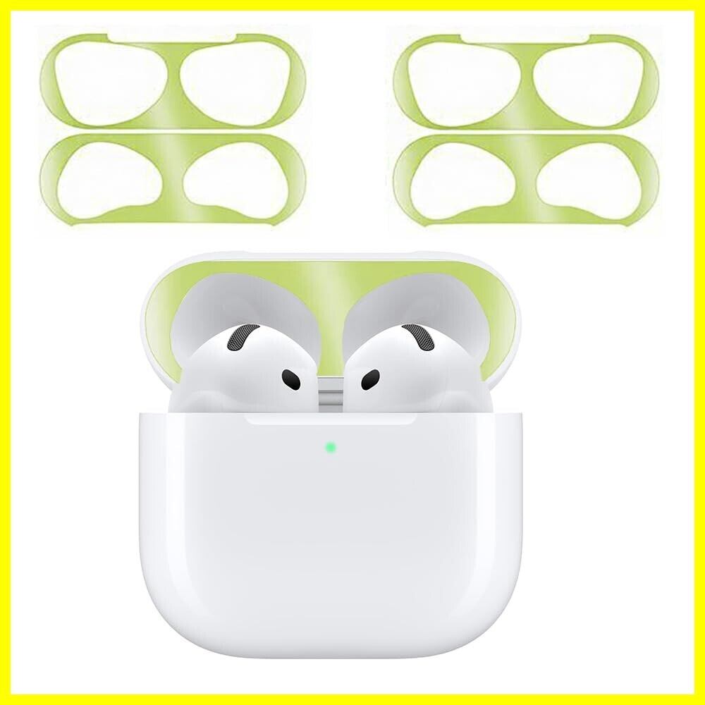 【2024強化版】ILYAML for AirPods 4 ダストガード エアーポッズ 4用 ガードカバー 故障防止 吸着 ほこり ゴミ 金属製 侵入防止 防塵 粉塵防止 グリーン 4枚(2セット)