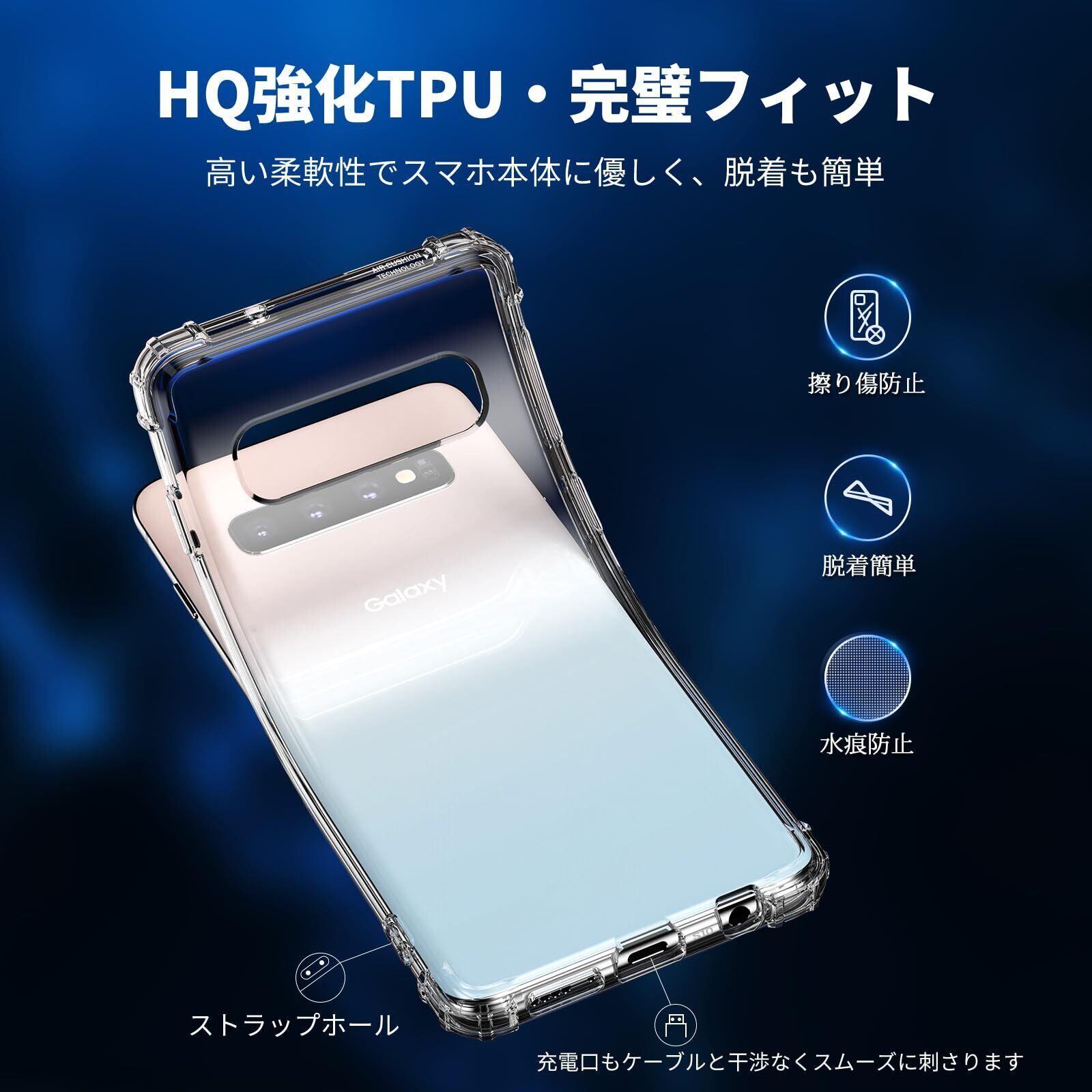 Aunote Galaxy S10 ケース クリア SC-03L SCV41 対応 米軍MIL規格 耐衝撃 ストラップホール付き TPU 薄型 軽量 スマホケース 擦り傷防止 ワイヤレス充電対応 ギャラクシーs10 カバー