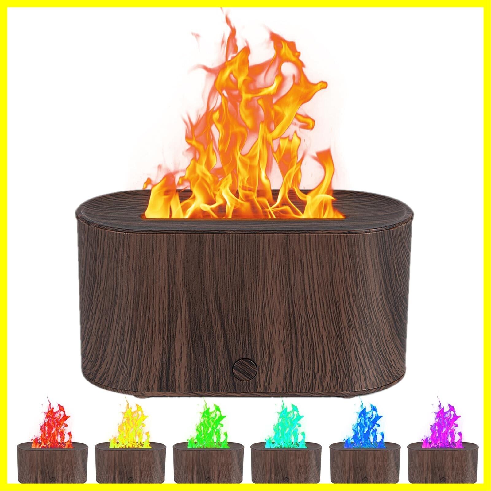 Todeco アロマディフューザー 炎 加湿器 7色LEDライト 小型 卓上加湿器 超音波加湿器 アロマ対応 静音 Type-c 給電式 空焚き防止 自動オフ ポータブル 寝室 リビング オフィス デスク 乾燥/花粉症対策(ダークウッド)