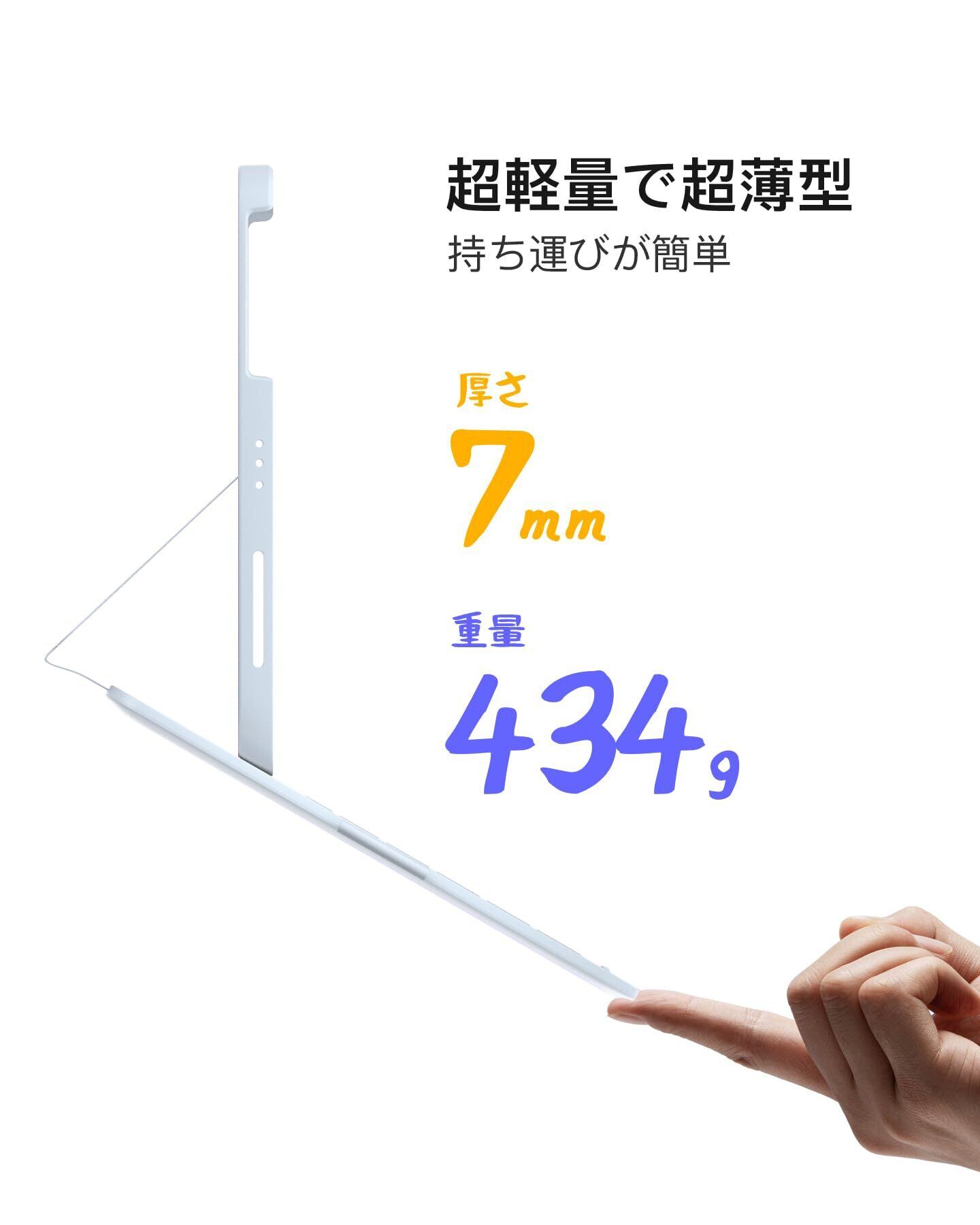超薄型で超軽量:キーボードの厚さは0.7cmで、カバーで覆われているときが1.5cmです。全体の重量は434gで、類似製品の90%より軽量。より便利に持ち歩くための軽量設計です