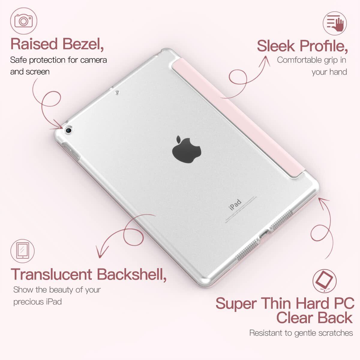 iPad 9世代 ケース iPad 9 2021 iPad 8 2020 iPad 10.2 ケース 2019 TiMOVO ipad 第9世代/第8世代/第7世代 ケース 10.2インチ 半透明 ハードカバー PUレーザー 開閉式 三つ折り スタンド マグネット オートスリープ 耐衝撃 軽量 落下防止 精密設計 着脱簡単 ipad10.2 ケース (2021/2020/2019) ライトピンク