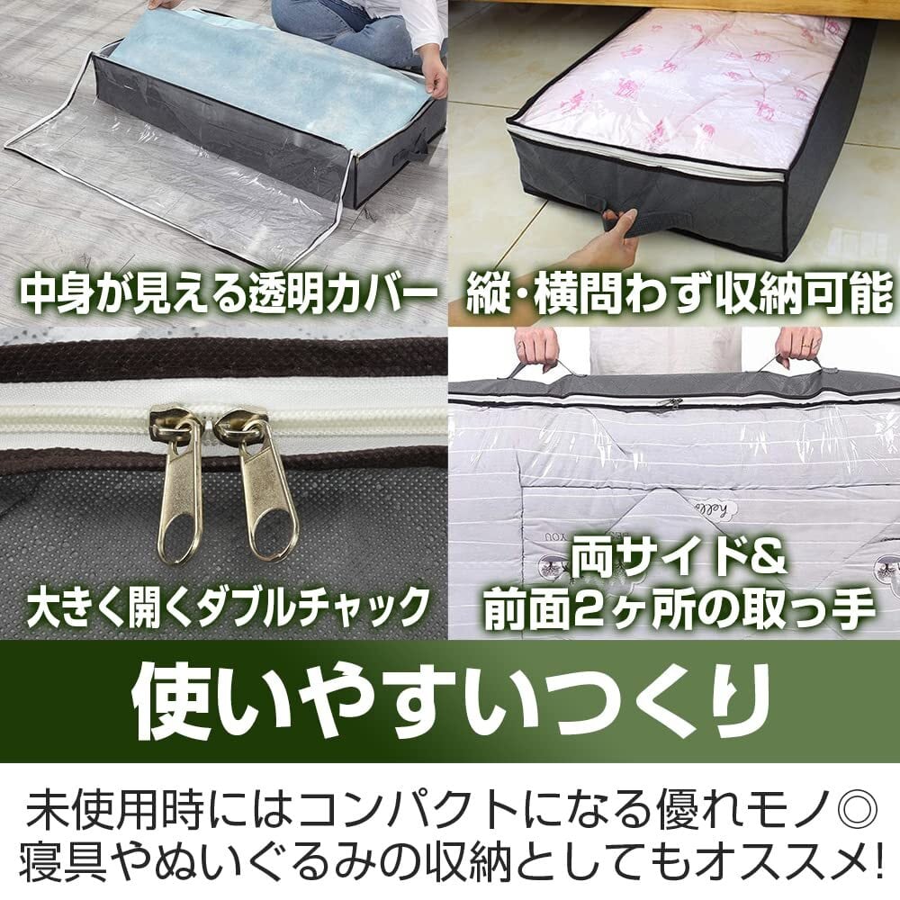 ベッド下収納ケース 2個セット デッドスペース活用 大容量収納 取っ手付き 布団 季節物 透明窓完備 (高さ16cm)