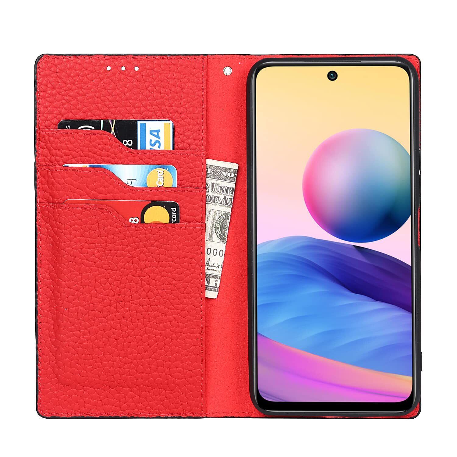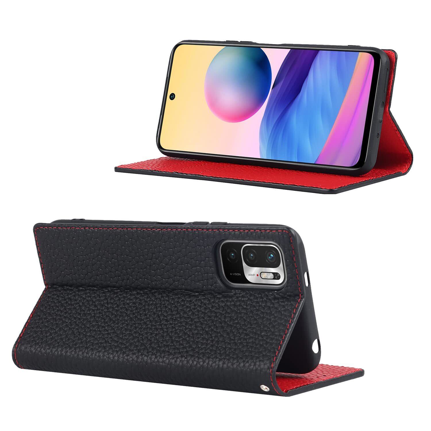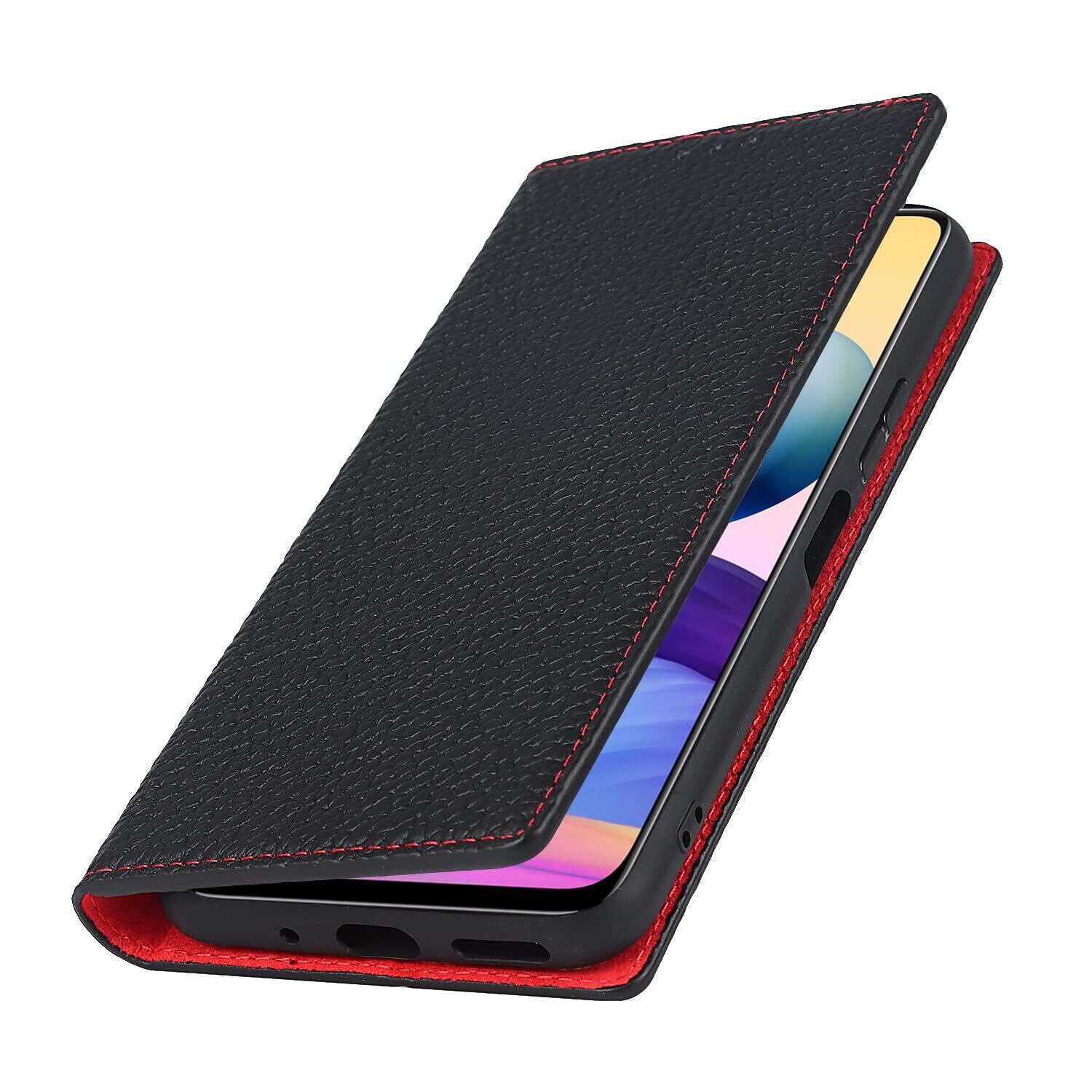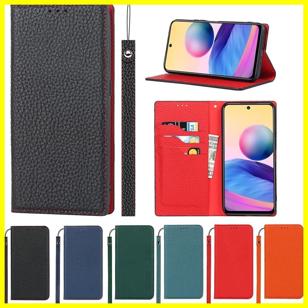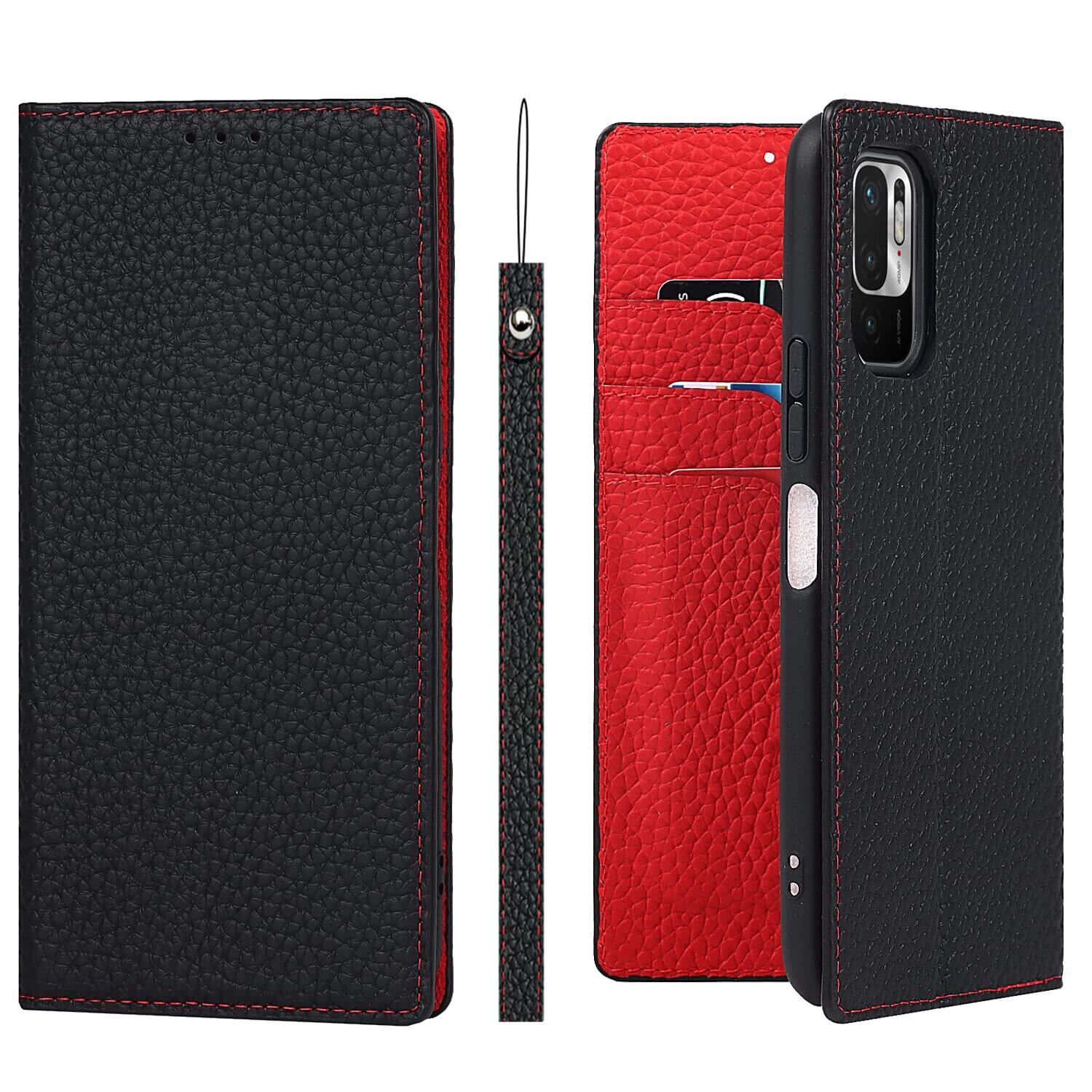 Eastwave for Xiaomi Redmi Note 10 JE ケース 本革 牛革 for Redmi Note 10Tケース 手帳型 for Redmi Note10 JE XIG02 カバー 手帳 本革 柔らかい 本皮 スプラットホール付き スプラット同梱 内蔵マグネット-ブラック