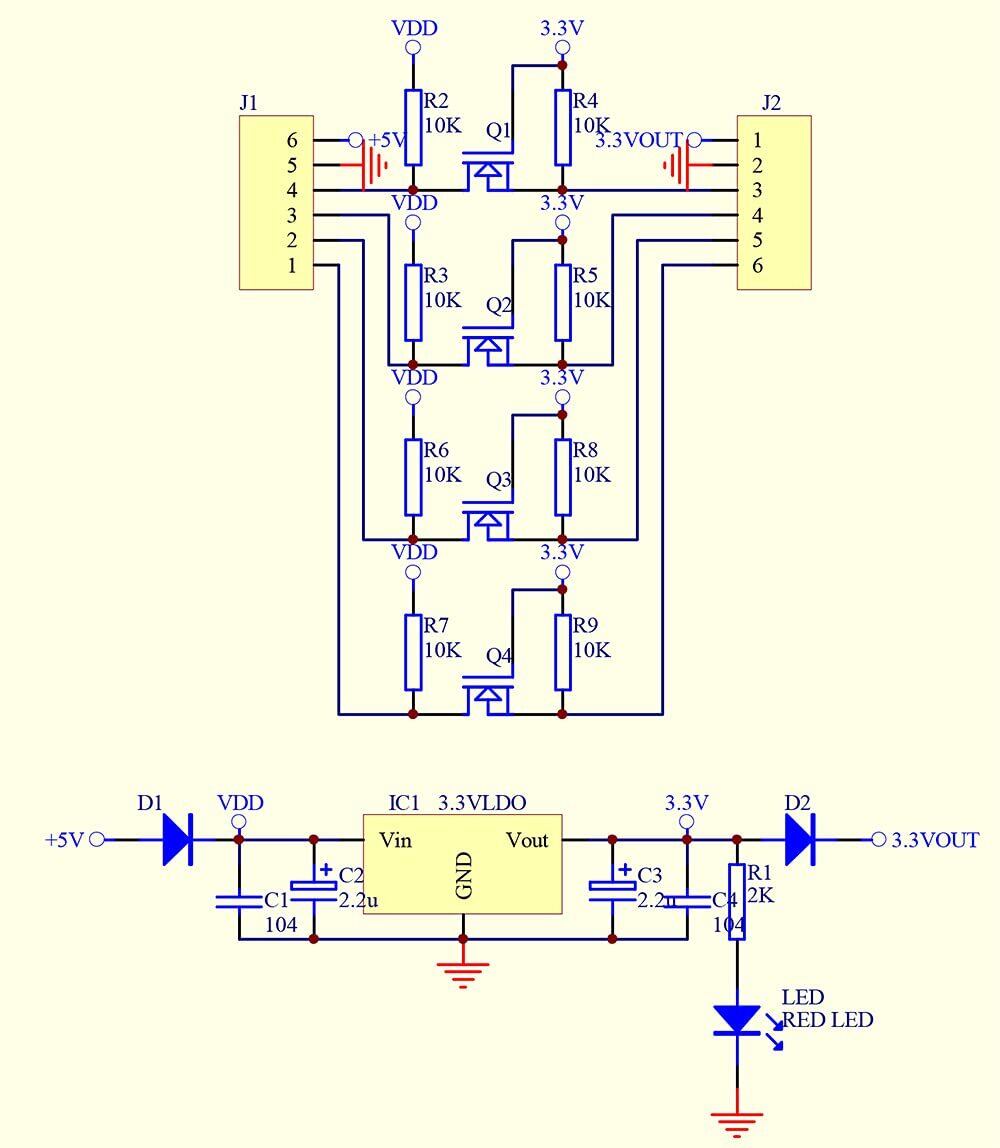 このレベルコンバータは、2.8Vおよび1.8Vデバイスでも動作します。高電圧と低電圧を正しく設定して、同じチャンネルでそれらの間を安全に昇降させることができます。