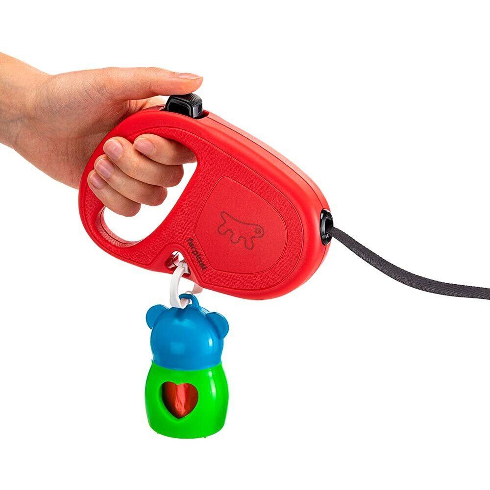 ワンちゃんの動きに合わせて自在に調節できる伸縮リード。