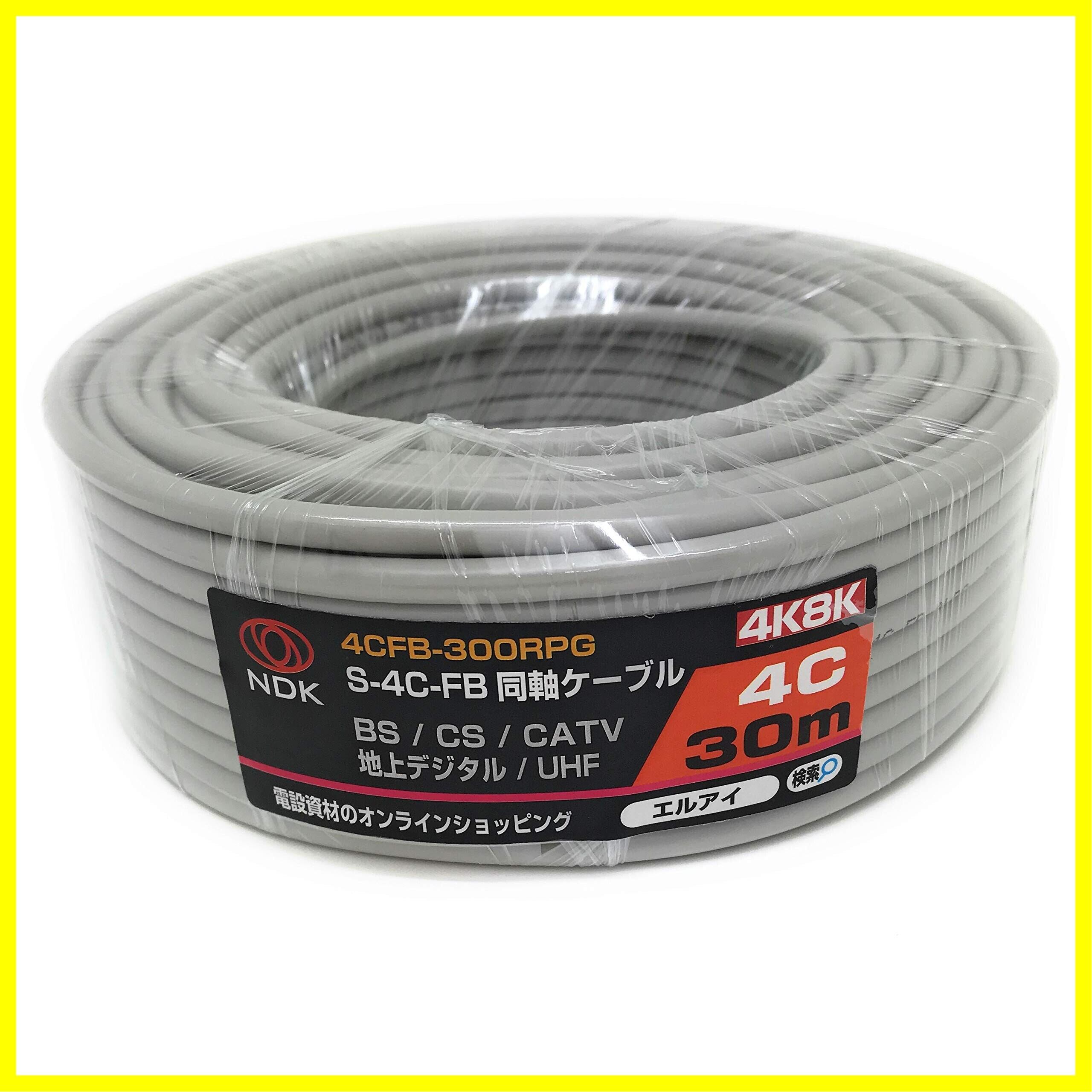 二幸電気工業 S4CFB 同軸ケーブル 30m 薄灰 (2K 4K 8K BS CS CATV 地デジ) アンテナケーブル 両端未加工 純銅素材の芯線導体 (4CFB-300RPG)